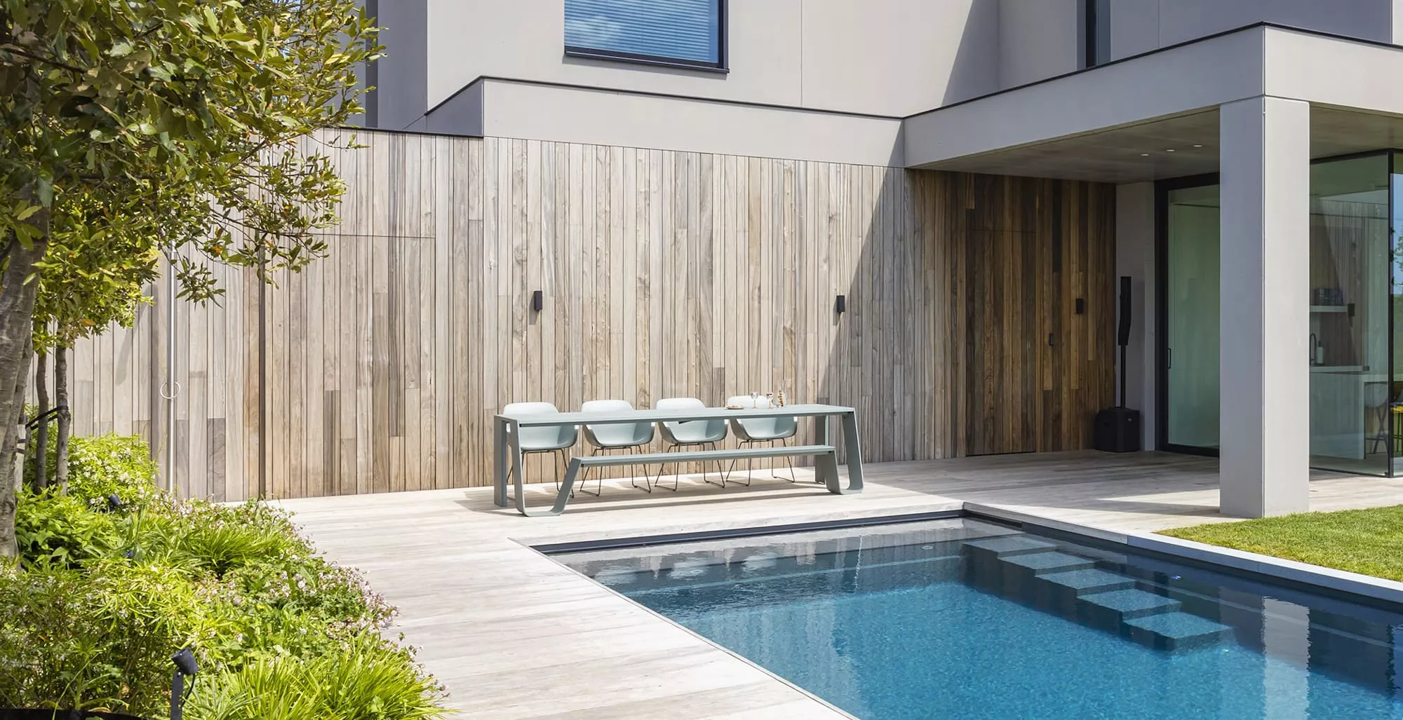 - Holzelemte, Sitzfläche aus Iroko-Hartholz, Hellwood oder beschichtet
