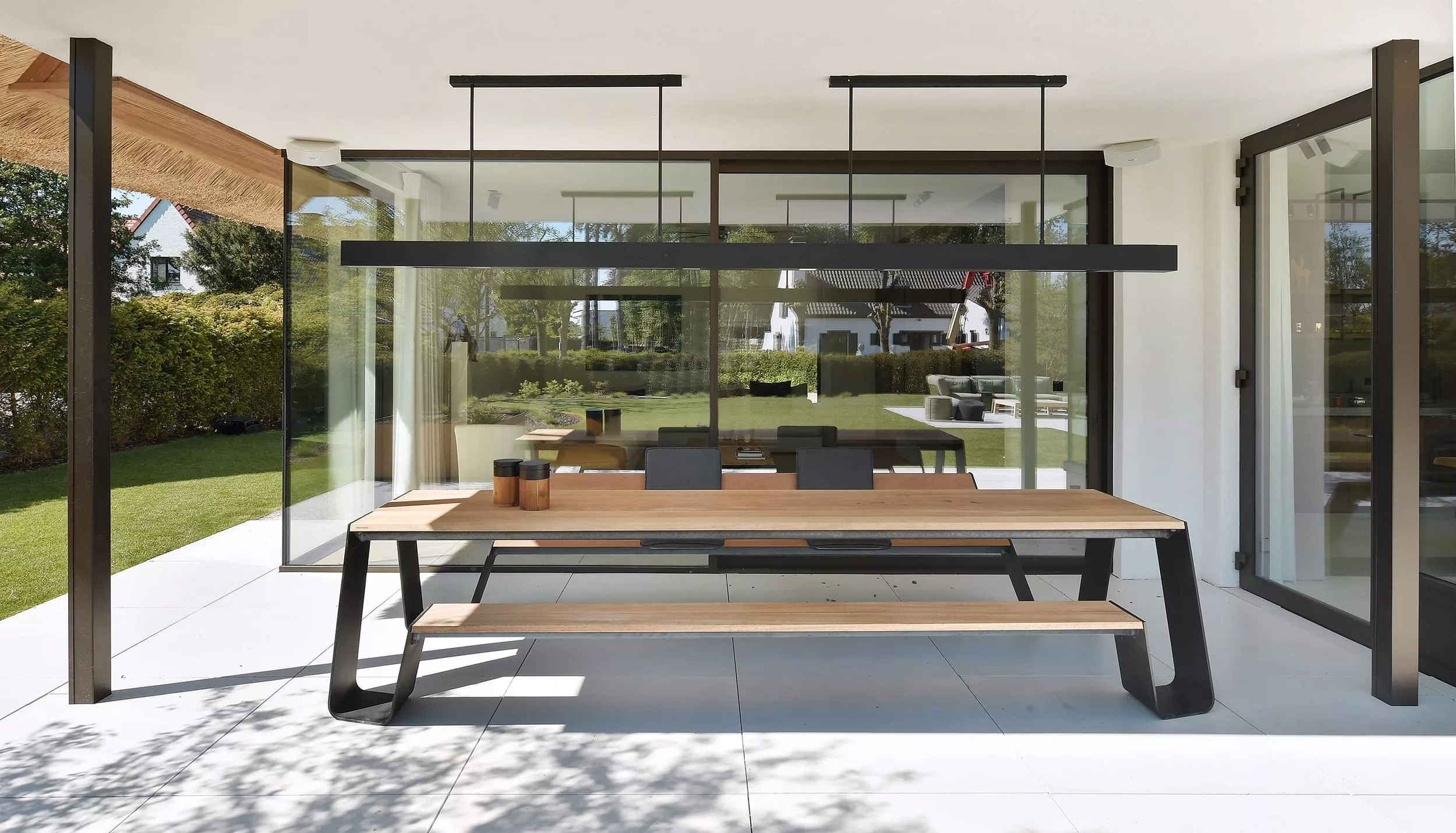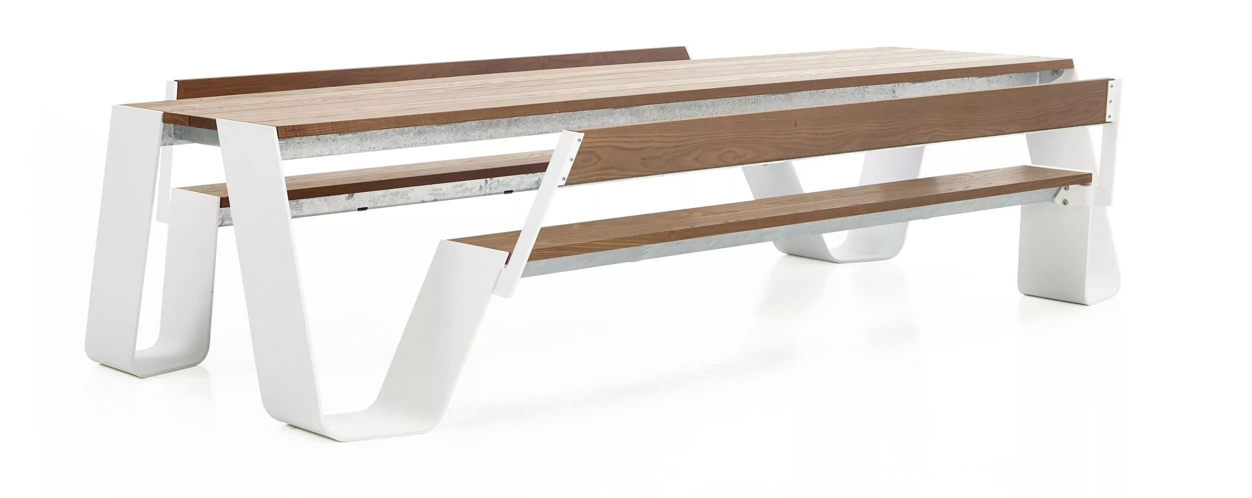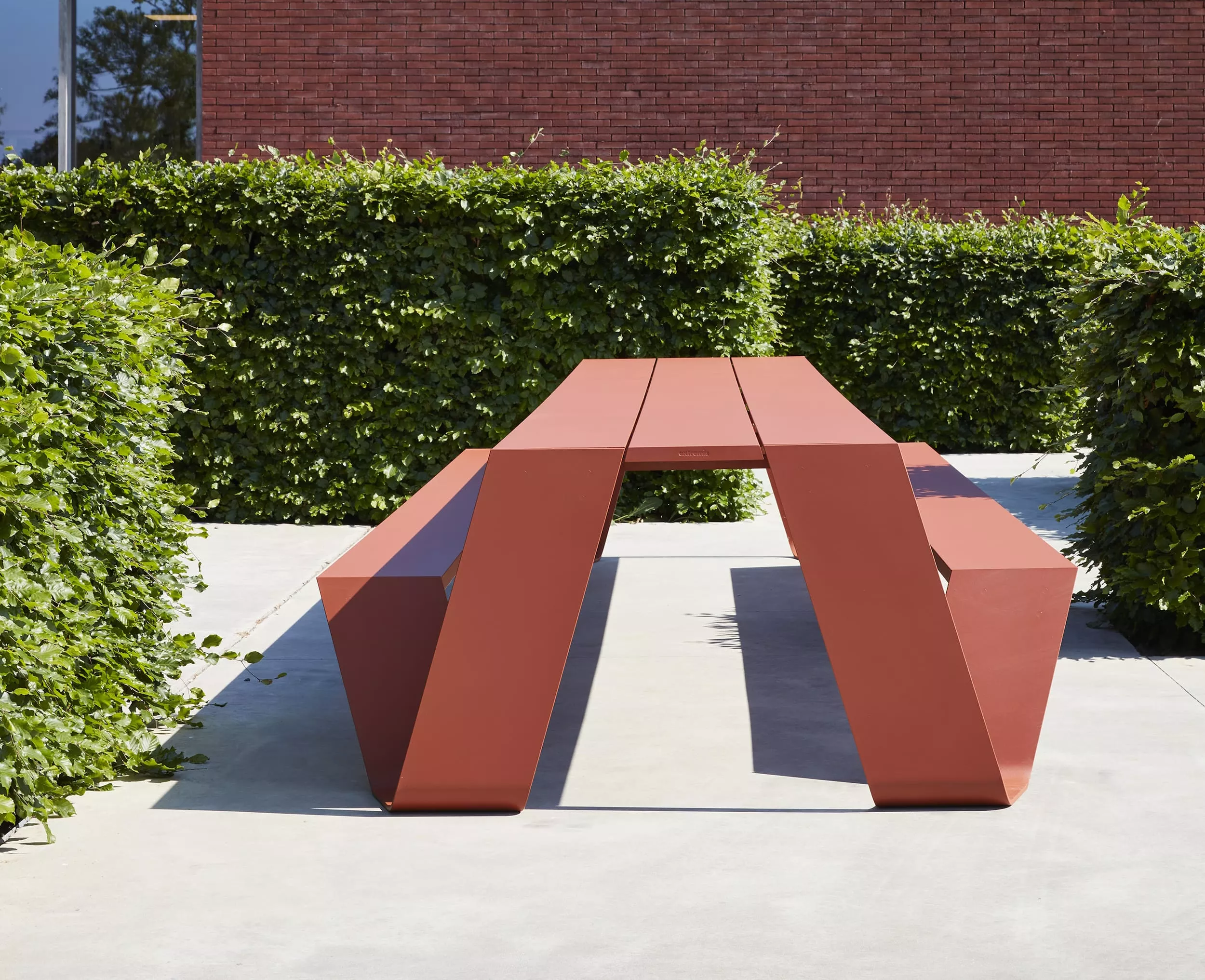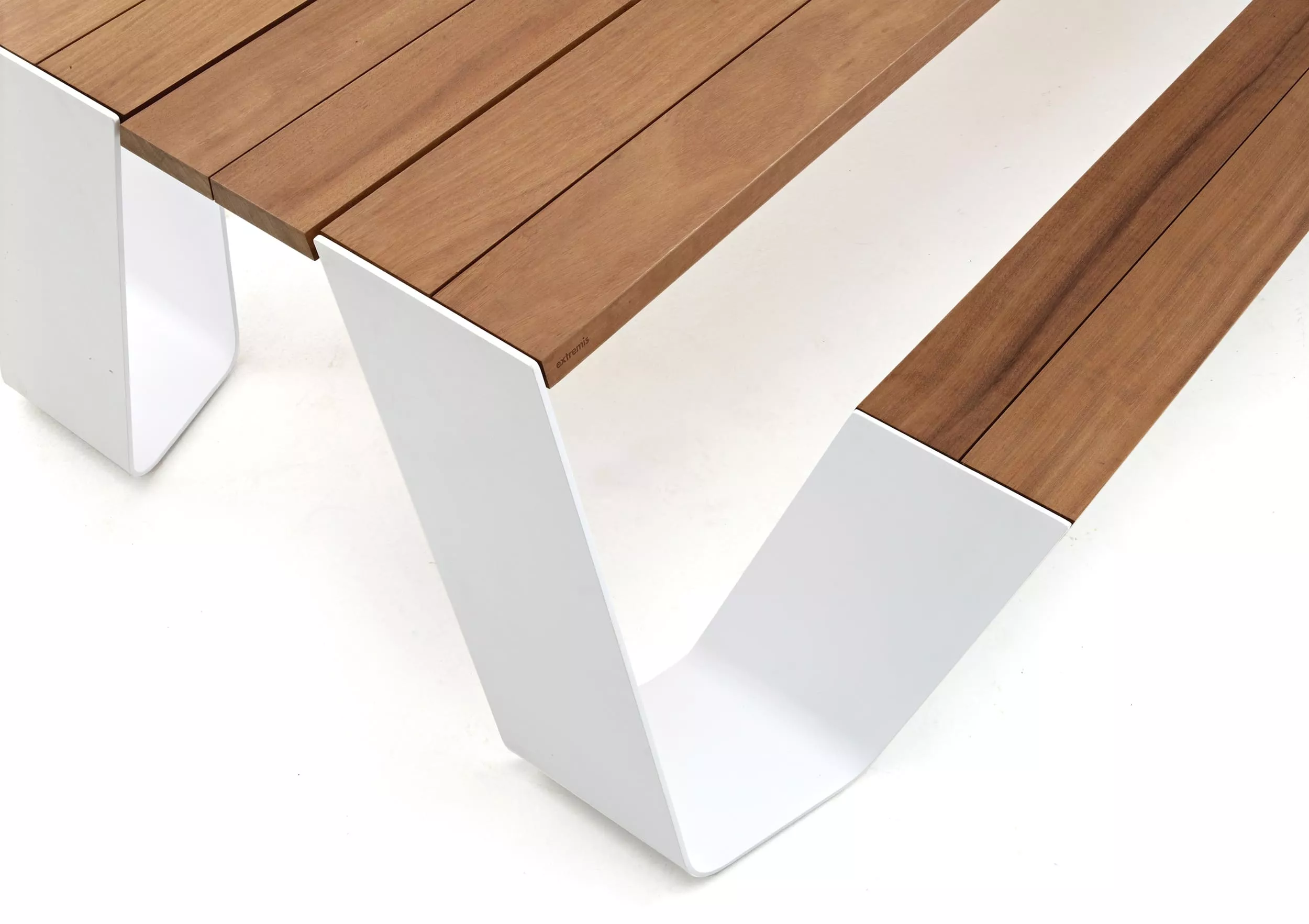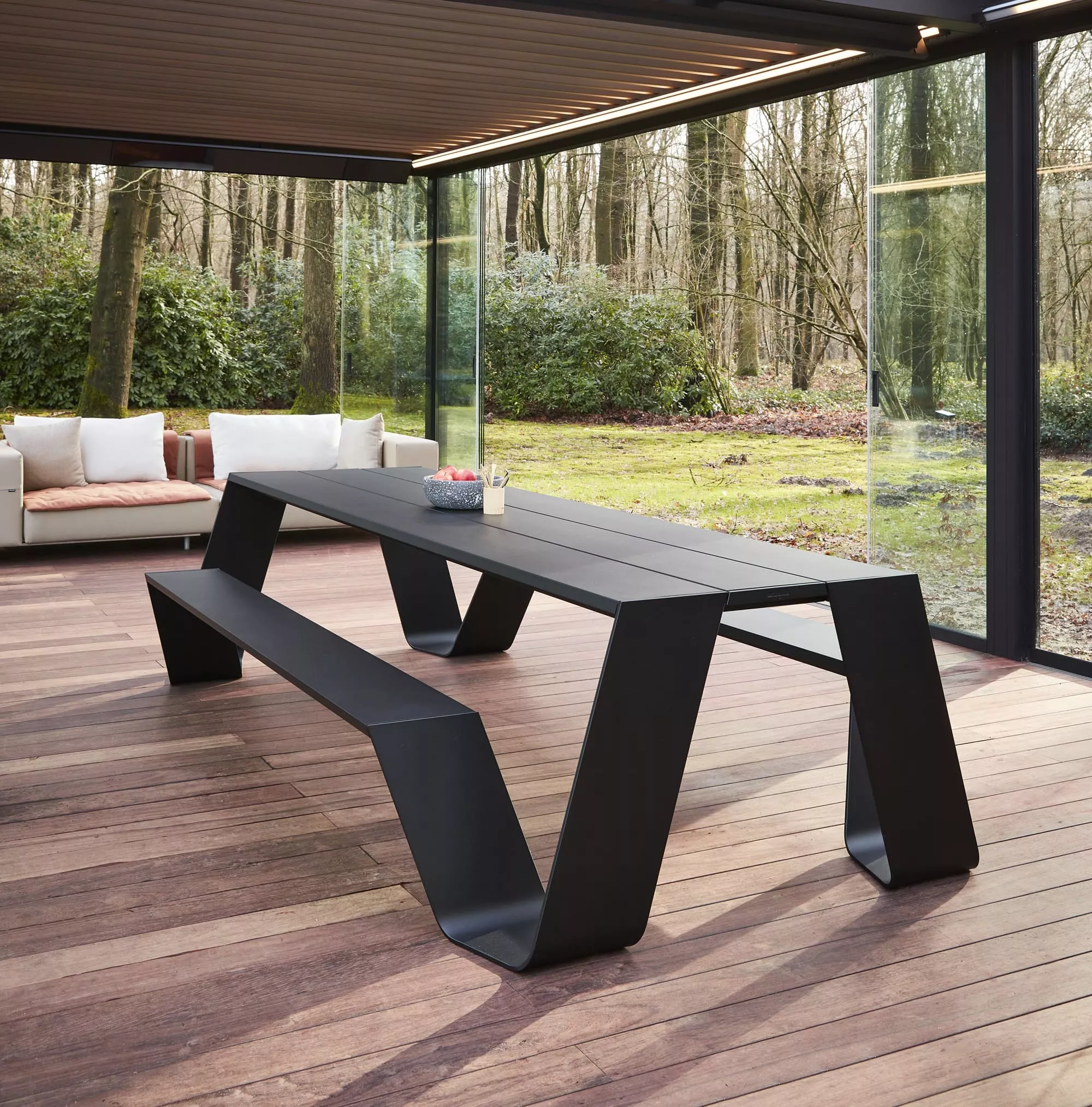 Hopper bietet eine innovative Lösung für das traditionelle Konzept eines Picknicktisches. Dank der leicht zugänglichen Bänke entfällt das lästige "Über-die-Bank-Steigen" vollständig. Das Design, das sich durch seine verdeckten Beine und die nahtlose Verbindung zur Tischplatte auszeichnet, wurde von den charakteristischen Hopfenfeldern der belgischen Region Westhoek inspiriert. Wenn man sich auf die Bank andersherum setzt, dient der Tisch gleichzeitig als komfortable Rückenlehne. Die Tischbeine, wahlweise aus Aluminium oder Stahl, in Kombination mit hochwertigem Hartholz gewährleisten eine lange Lebensdauer, während die fixierten Bänke eine ansprechende Ästhetik bieten. Dieser zeitgemäße Picknicktisch ist in vier verschiedenen Größen erhältlich und bietet Platz für vier bis zehn Personen. Für den perfekten Komfort können Sie das Set durch den Hopper Schirm ergänzen. Die offene Seite der Hopper Combo ermöglicht eine hohe Flexibilität, da sie Platz für Rollstühle oder Kinderhochstühle bietet. Somit ist sie eine einladende Lösung für verschiedene Nutzergruppen und Situationen.