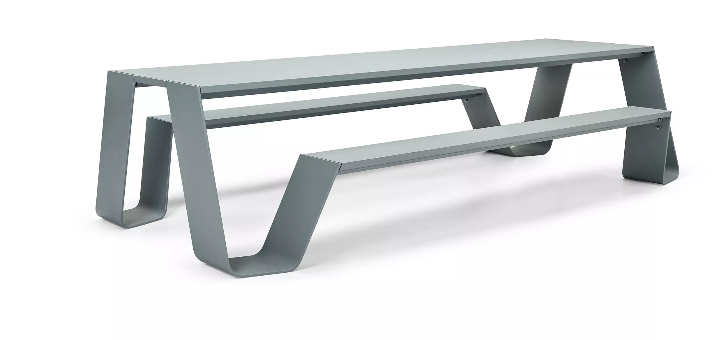 Hopper bietet eine innovative Lösung für das traditionelle Konzept eines Picknicktisches. Dank der leicht zugänglichen Bänke entfällt das lästige "Über-die-Bank-Steigen" vollständig. Das Design, das sich durch seine verdeckten Beine und die nahtlose Verbindung zur Tischplatte auszeichnet, wurde von den charakteristischen Hopfenfeldern der belgischen Region Westhoek inspiriert. Wenn man sich auf die Bank andersherum setzt, dient der Tisch gleichzeitig als komfortable Rückenlehne. Die Tischbeine, wahlweise aus Aluminium oder Stahl, in Kombination mit hochwertigem Hartholz gewährleisten eine lange Lebensdauer, während die fixierten Bänke eine ansprechende Ästhetik bieten. Dieser zeitgemäße Picknicktisch ist in vier verschiedenen Größen erhältlich und bietet Platz für vier bis zehn Personen. Für den perfekten Komfort können Sie das Set durch den Hopper Schirm ergänzen. Die offene Seite der Hopper Combo ermöglicht eine hohe Flexibilität, da sie Platz für Rollstühle oder Kinderhochstühle bietet. Somit ist sie eine einladende Lösung für verschiedene Nutzergruppen und Situationen.