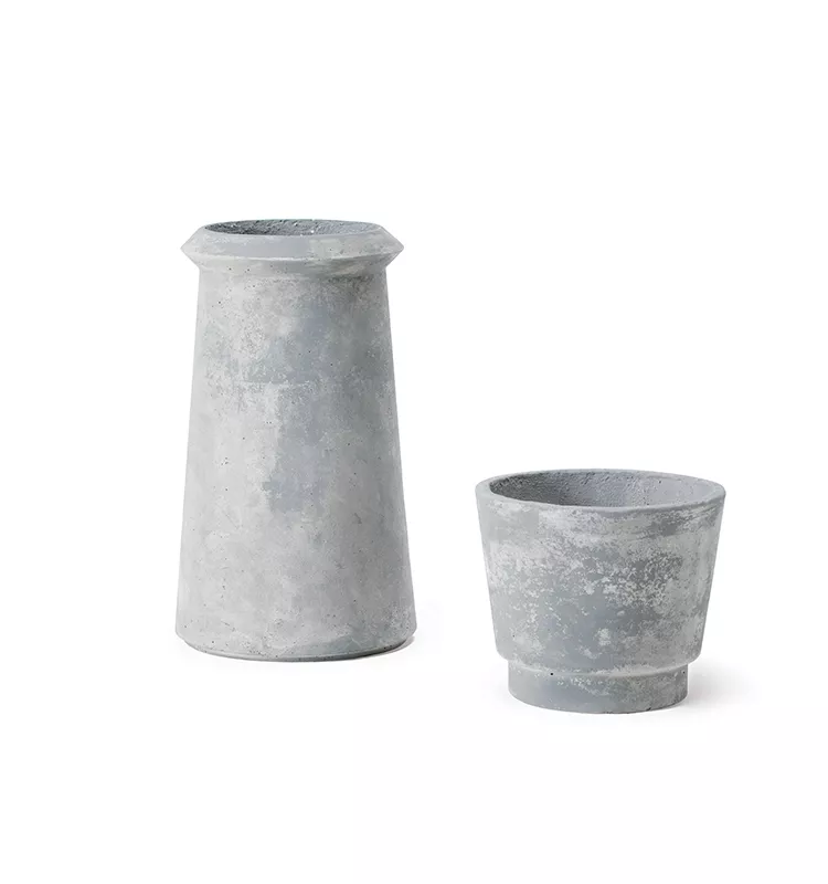Die Bulbi-Kollektion umfasst sechs Vasen in unterschiedlichen Formen und Größen, die einzeln, in Gruppen oder sogar als praktische Beistelltische verwendet werden können, wodurch die klassische Nutzung dieses Einrichtungsaccessoires auf originelle Weise neu interpretiert wird. Handwerkliche Fertigung verleiht der Beton-Oberfläche eine ungewöhnliche Textur und betont die Solidität und einzigartig unvollkommene Beschaffenheit jedes einzelnen Elements, das jeweils mit unverwechselbaren ästhetischen Qualitäten ausgestattet ist.