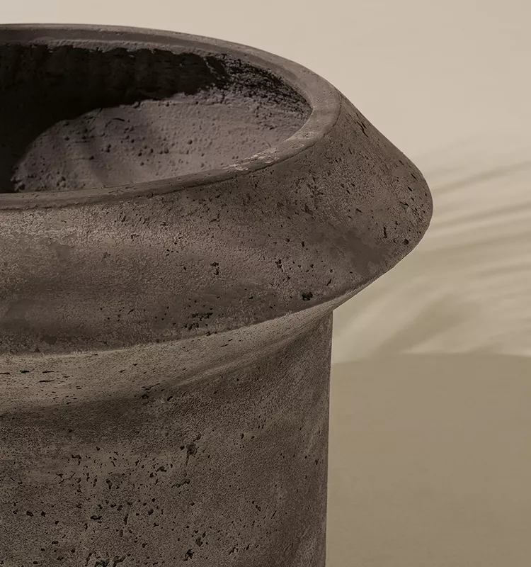 Die Bulbi-Kollektion umfasst sechs Vasen in unterschiedlichen Formen und Größen, die einzeln, in Gruppen oder sogar als praktische Beistelltische verwendet werden können, wodurch die klassische Nutzung dieses Einrichtungsaccessoires auf originelle Weise neu interpretiert wird. Handwerkliche Fertigung verleiht der Beton-Oberfläche eine ungewöhnliche Textur und betont die Solidität und einzigartig unvollkommene Beschaffenheit jedes einzelnen Elements, das jeweils mit unverwechselbaren ästhetischen Qualitäten ausgestattet ist.