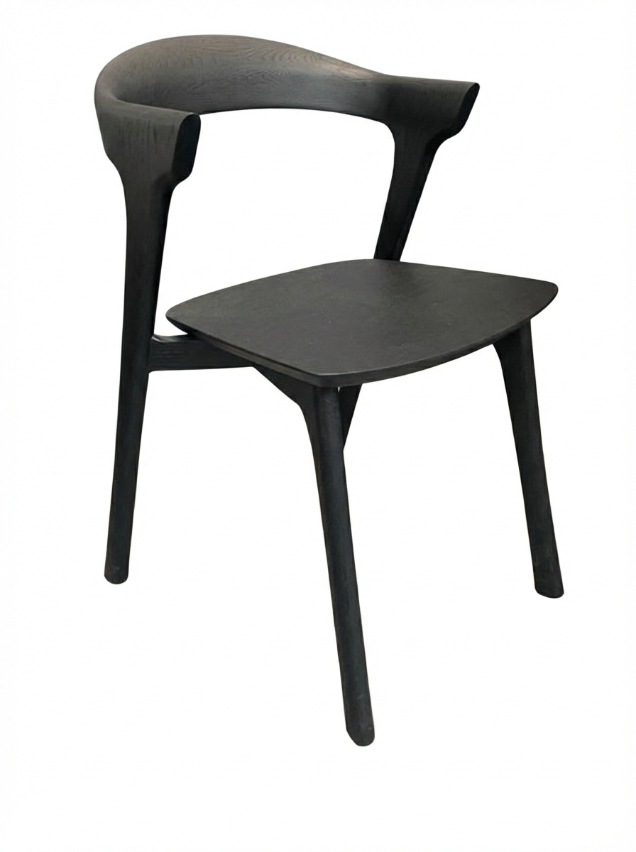 Ethnicraft - BOK Essstühle - Eiche Schwarz Der Bok Esszimmerstuhl in Eiche Schwarz erobert weiterhin Herzen mit seinem ikonischen Design. Entworfen von Alain van Havre, vereint dieser Stuhl harmonisch skulpturale Eleganz mit modernem Handwerk und schafft ein Stück, das gleichermaßen anmutig und luftig ist. Sein schlankes schwarzes Finish verleiht Ihrem Essbereich eine Prise Raffinesse und Intrige und macht ihn zu einem faszinierenden Mittelpunkt.Entworfen von Alain van HavreSitzhöhe: 46 cmAus schwarz lackiertem Eichenholz mit LackfinishOptional mit Polsterung (Soft Black, Grey oder Black Leather)Gewicht: 7 kgMaße: 50 x 54 x 76cm