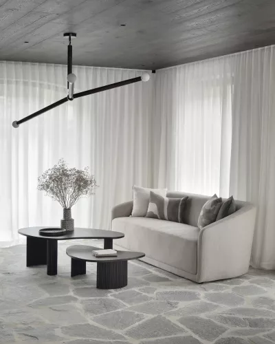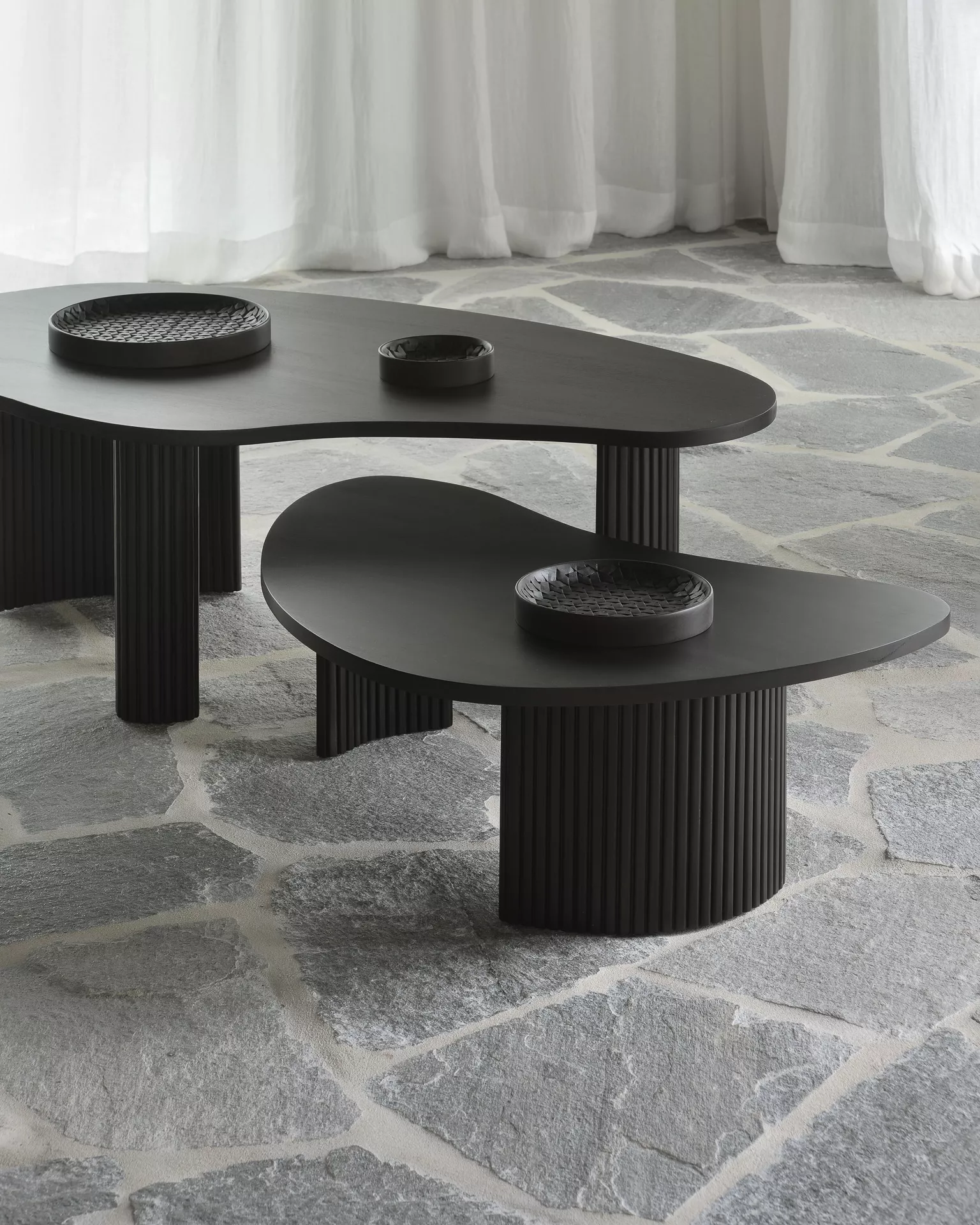 Der Boomerang Couchtisch präsentiert verspielte, kieselsteinförmige Muster auf seinem elegant gefalteten Sockel. Dieses einzigartige Design verleiht jedem Raum eine faszinierende und harmonische Note. Ob Sie sich für die Kombination beider verfügbaren Größen entscheiden oder einen einzelnen Tisch wählen, der Boomerang Couchtisch zieht definitiv bewundernde Blicke auf sich und sorgt für ein beeindruckendes Highlight in Ihrer Einrichtung.