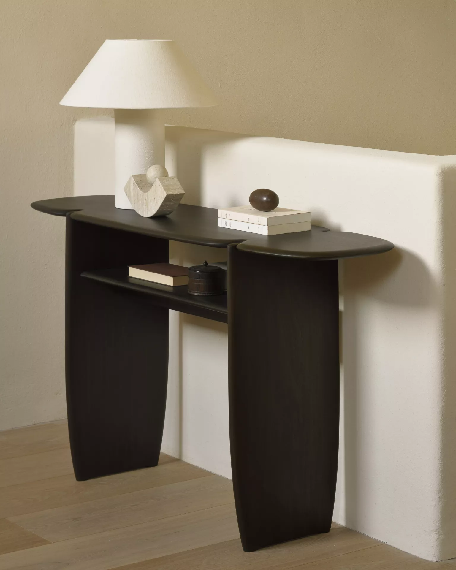 Die PI-Konsole, Teil unserer Hommage an das Design der Natur, bewahrt die Stärke, Kurven und Linien, die die Natur vorgesehen hat. Sein schlankes und stilvolles Design zeichnet sich durch eine polierte, aber unvollkommene Oberfläche aus, die interessante Formen und Charakter offenbart. Jede PI-Konsole wird von Hand gefertigt, um den einzigartigen Charakter des Holzes zu würdigen. Es wurde von Alain van Havre entworfen und ist ein Beweis für die Schönheit natürlicher Unvollkommenheiten und stellt den zeitlosen Charme handwerklicher Handwerkskunst zur Schau.