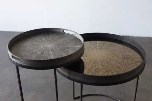 Ethnicraft - Tablett-Couchtisch Set | Rund - 2er-Set