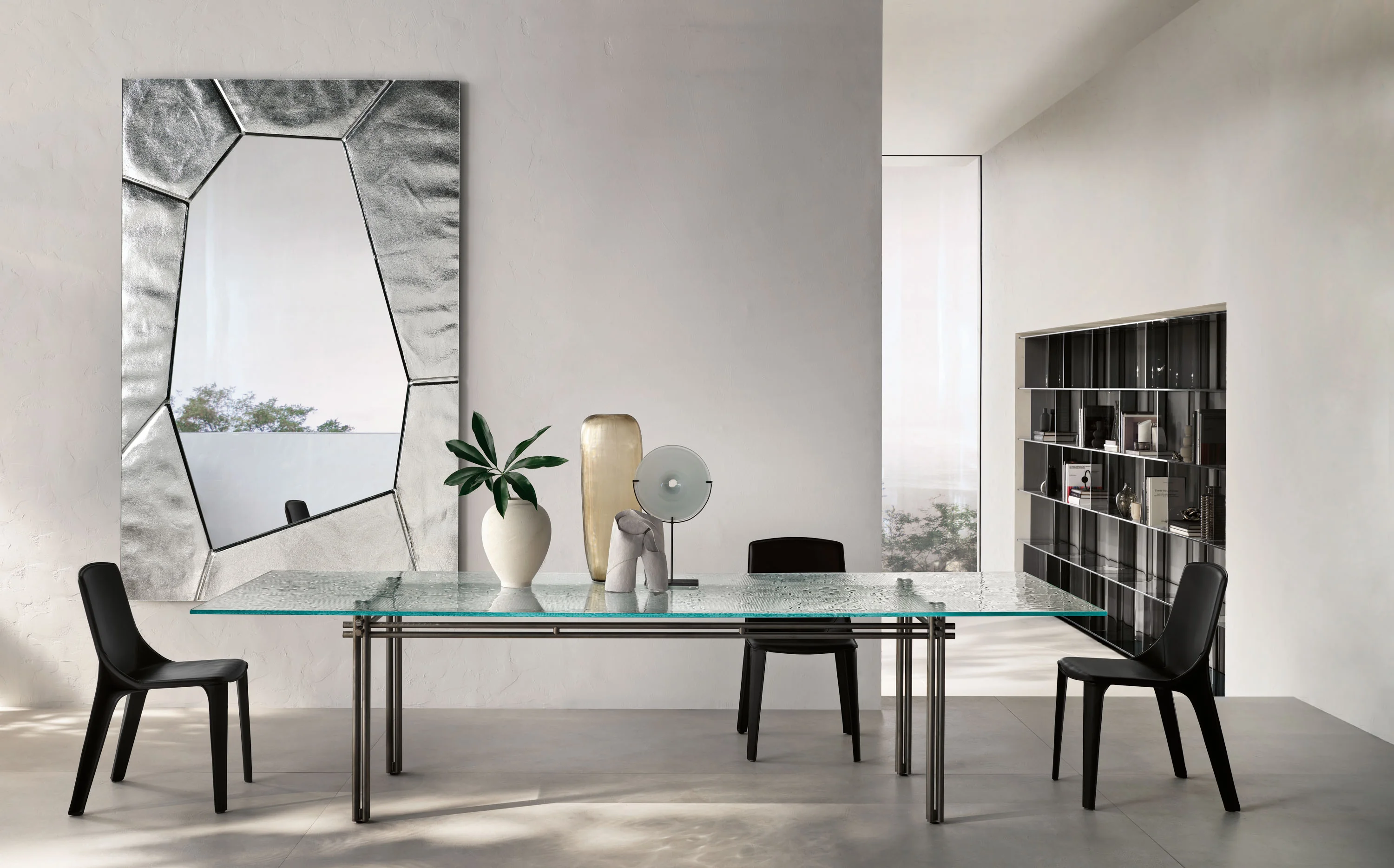 FIAM CHRISTINE Wandspiegel Eleganter Wandspiegel CHRISTINE aus geschmolzenem Glas Design von Helidon Xhixha & Dante O. Benini-Luca Gonzo Versilberte, geschmolzene Spiegelfläche mit 6 mm flacher Ausführung. Der rückseitige Rahmen aus lackiertem Metall sorgt für Stabilität und eine hochwertige Optik. Flexibel einsetzbar – sowohl vertikal als auch horizontal aufhängbar.Die Schmiedenspuren sind ein eigentuemliches und unverwechselbares Merkmal des Artikels und garantieren die handwerkliche Kunstfertigkeit vom Objekt.Bitte beachten Sie: Die Ausführungen in Rauch- oder Bronzeglas beziehen sich ausschließlich auf den Rahmen – die Spiegelfläche bleibt klar versilbert. Für weitere Informationen und weitere Varianten der Spiegelfläche steht Ihnen unser Kundenservice gerne zur Verfügung.Netto-Gewicht: 28 kg bis 48 kg Gegen Aufpreis erhältlich in Rauchglas und Bronzeglas