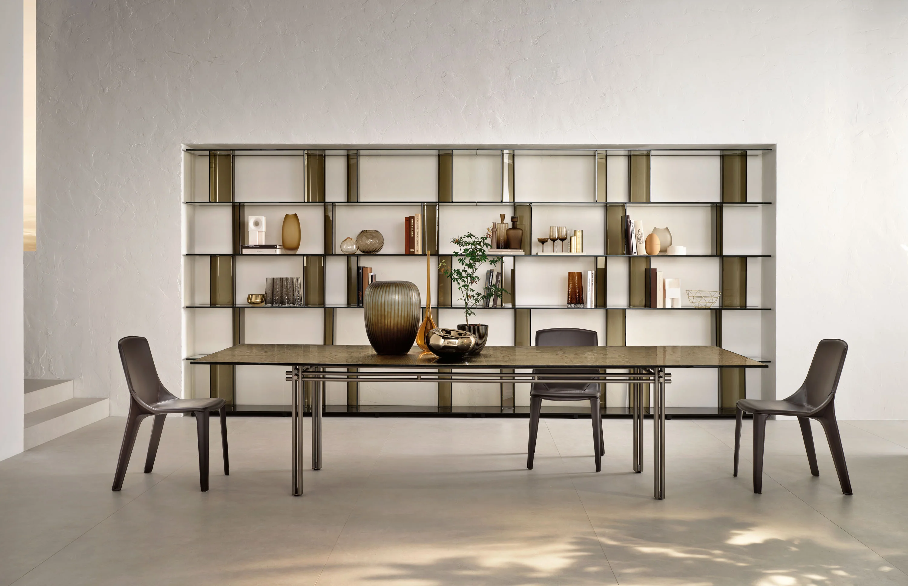 FIAM INORI Regalsystem Interessieren Sie sich für das Regalsystem? Unser Kundenservice hilft Ihnen gerne weiter und berät Sie persönlich – wir freuen uns auf Ihre Anfrage!INORI Regalsystem – Design von SETSU & SHINOBU ITO Dieses modulare Regalsystem aus hochwertigem Glas oder edlem Holz überzeugt durch maximale Vielseitigkeit und moderne Eleganz. Ob als Bücherregal, Ausstellungsfläche oder TV-Element – die Gestaltungsmöglichkeiten sind nahezu grenzenlos. Dank der cleveren Modulbauweise lässt sich das System frei kombinieren – als stilvolles Wandregal oder freistehend im Raum. Die Stützen können flexibel auf jedem Fachboden positioniert werden, dank eines durchdachten Führungs- und Befestigungsmoduls. Die stabile Laufschiene aus schwarz eloxiertem Aluminium verleiht dem System nicht nur einen eleganten Look, sondern sorgt auch für höchste Belastbarkeit: Tragkraft pro Fachboden: bis zu 80 kg Gesamttragfähigkeit der Struktur: bis zu 400 kg Maximaler Abstand zwischen den Stützen: 130 cm Maximaler Überstand der Fachböden: 35 cm (zwischen äußerer Stütze und Außenkante) Ein intelligentes, belastbares und ästhetisch überzeugendes Regalsystem – für alle, die Flexibilität mit Design verbinden möchten.