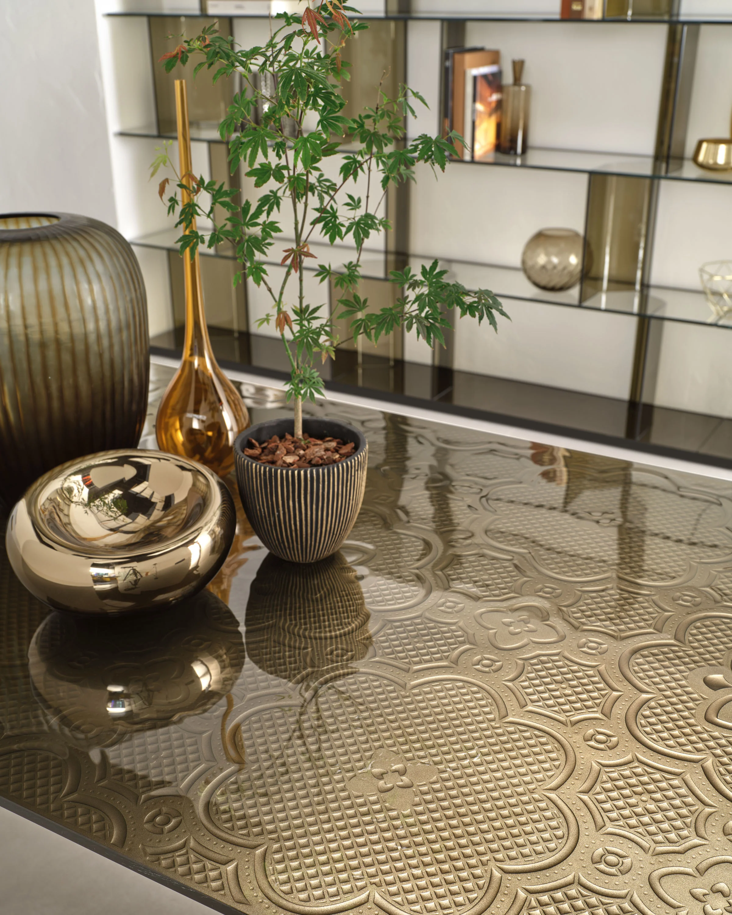 FIAM BIG WAVE Esstisch • verschiedene GrößenInteressieren Sie sich für den Tisch in einer anderen Ausführung? Unser Kundenservice hilft Ihnen gerne weiter und berät Sie persönlich – wir freuen uns auf Ihre Anfrage! BIG WAVE von FIAM - Design LUDOVICA + ROBERTO PALOMBAEin Statement aus Glas, Handwerk und Design. Der BIG WAVE Tisch beeindruckt durch seine außergewöhnliche Basis, die aus vier oder sechs skulpturalen Elementen aus 30 mm starkem, hochwertigem DV-Glas gefertigt ist – veredelt mit farbigen Akzenten (Streifen), die jede Perspektive lebendig wirken lassen.Die Tischplatte ist wahlweise in drei exklusiven Ausführungen erhältlich: Klares, gehärtetes Glas (15 mm) – auf der Unterseite monochrom lackiert für einen modernen, eleganten Look Handveredelte Oberfläche mit Ecomalta – jeder Tisch ein Unikat mit fein strukturierter Haptik Edles Walnussfurnier (Canaletto) in Tabak-Finish – 40 mm stark, für ein warmes, luxuriöses Ambiente In der Konfiguration sind die folgenden Ausführungen erhältlich, für weitere Varianten, kontaktieren Sie gerne unseren Kundenservice: Platte aus Glas "Tabak" mit Ecomalta gespachtelt - Gestell DV Glas bronze- & transparente vertikale Streifen Platte aus Glas „Total Schwarz mit Ecomalta gespachtelt - Gestell DV Glas rauch- & transparente vertikale StreifenWeitere Informationen: Tragfähigkeit der Glasplatte: 150 kgTischhöhe: 75 cm Ein Meisterstück italienischen Designs – kraftvoll, kunstvoll und absolut einzigartig.