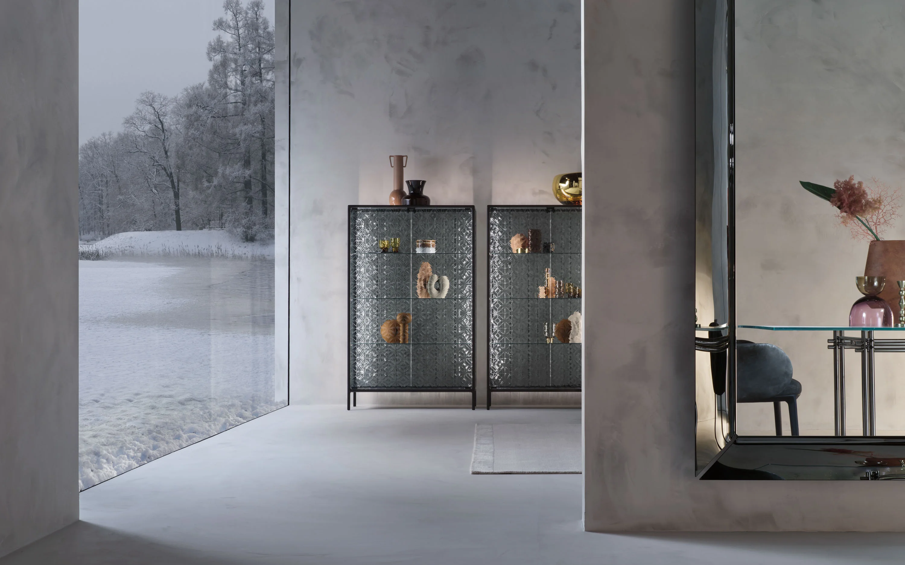 FIAM CHRISTINE Wandspiegel Eleganter Wandspiegel CHRISTINE aus geschmolzenem Glas Design von Helidon Xhixha & Dante O. Benini-Luca Gonzo Versilberte, geschmolzene Spiegelfläche mit 6 mm flacher Ausführung. Der rückseitige Rahmen aus lackiertem Metall sorgt für Stabilität und eine hochwertige Optik. Flexibel einsetzbar – sowohl vertikal als auch horizontal aufhängbar.Die Schmiedenspuren sind ein eigentuemliches und unverwechselbares Merkmal des Artikels und garantieren die handwerkliche Kunstfertigkeit vom Objekt.Bitte beachten Sie: Die Ausführungen in Rauch- oder Bronzeglas beziehen sich ausschließlich auf den Rahmen – die Spiegelfläche bleibt klar versilbert. Für weitere Informationen und weitere Varianten der Spiegelfläche steht Ihnen unser Kundenservice gerne zur Verfügung.Netto-Gewicht: 28 kg bis 48 kg Gegen Aufpreis erhältlich in Rauchglas und Bronzeglas