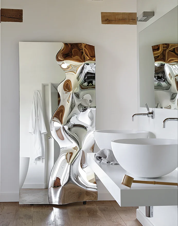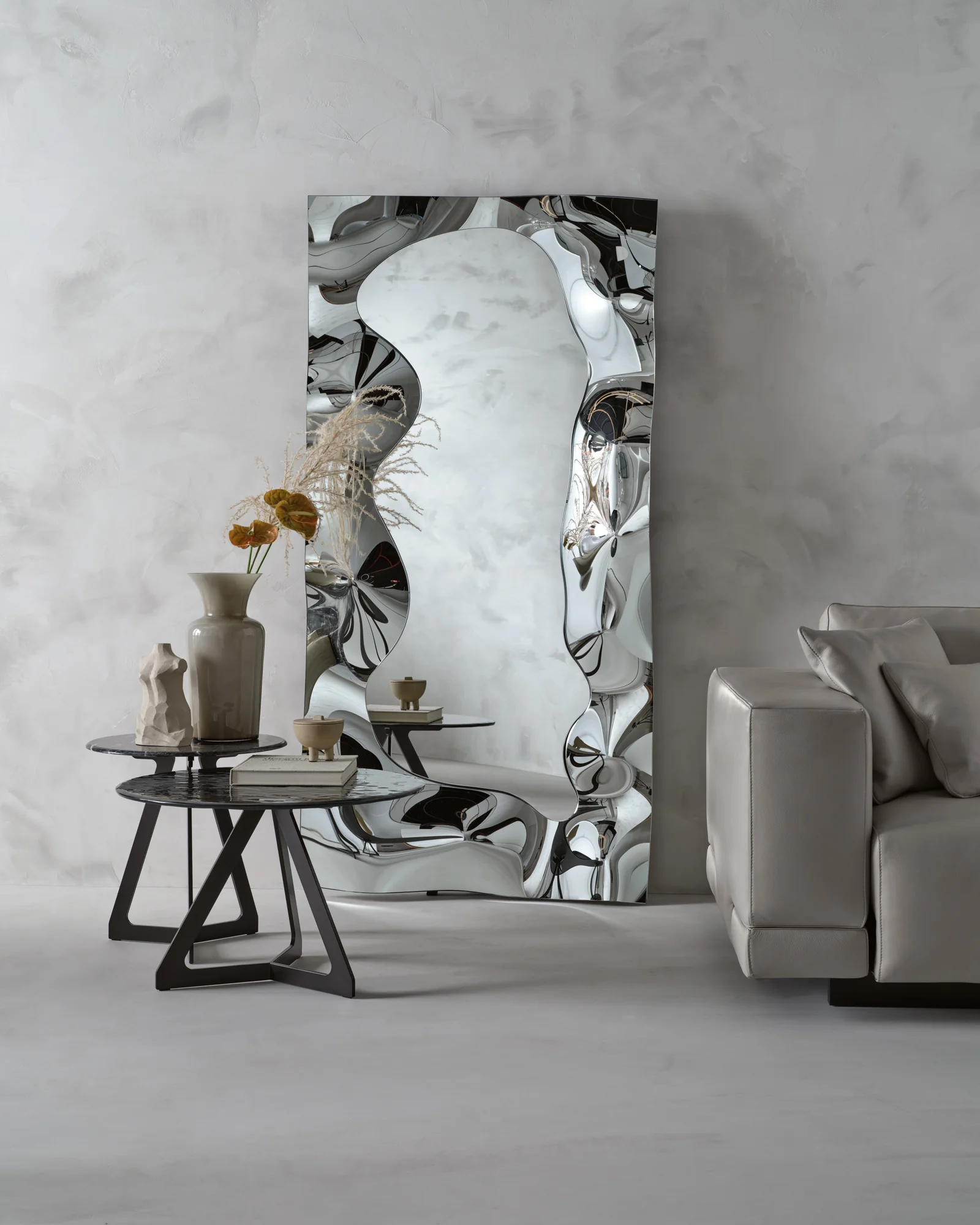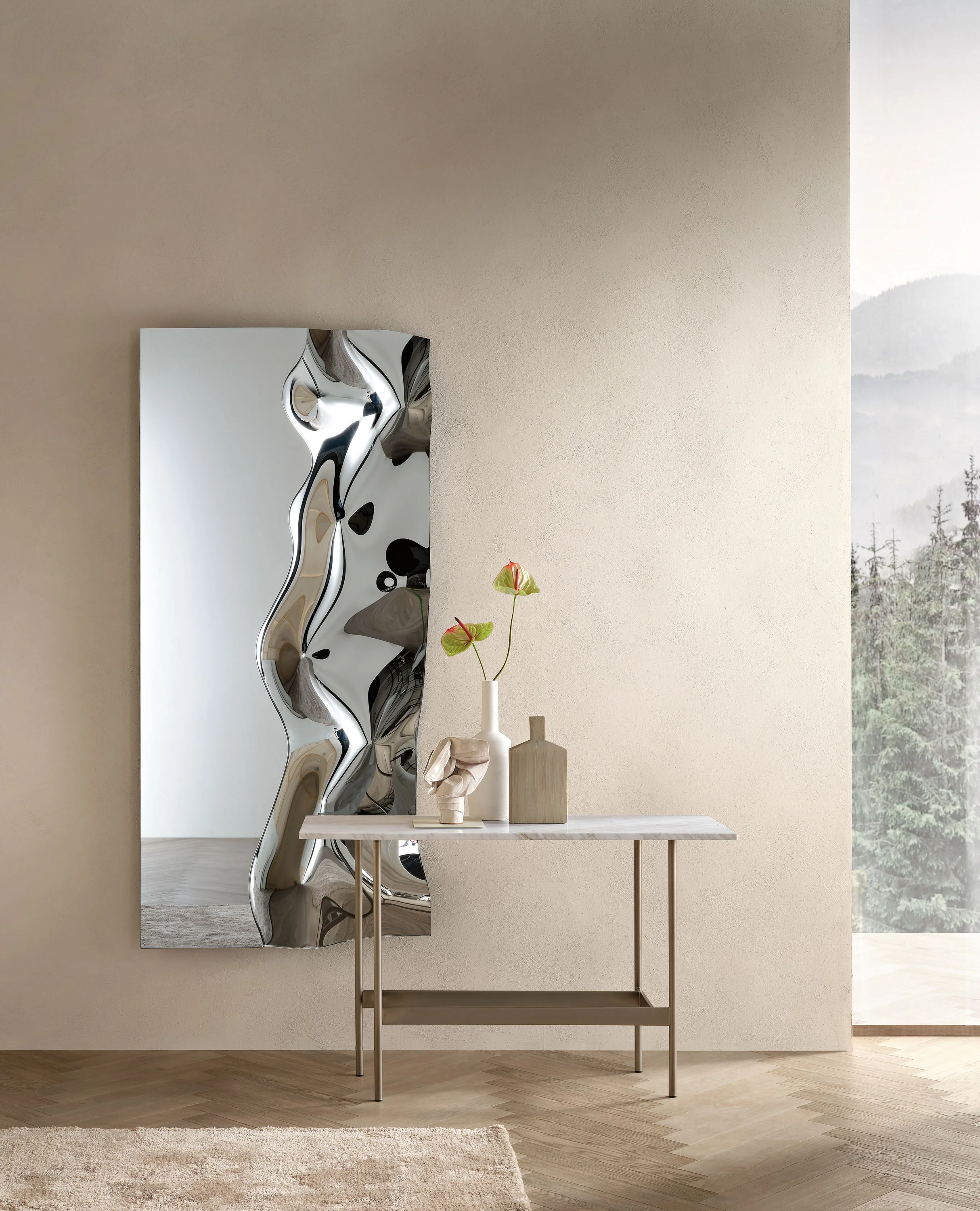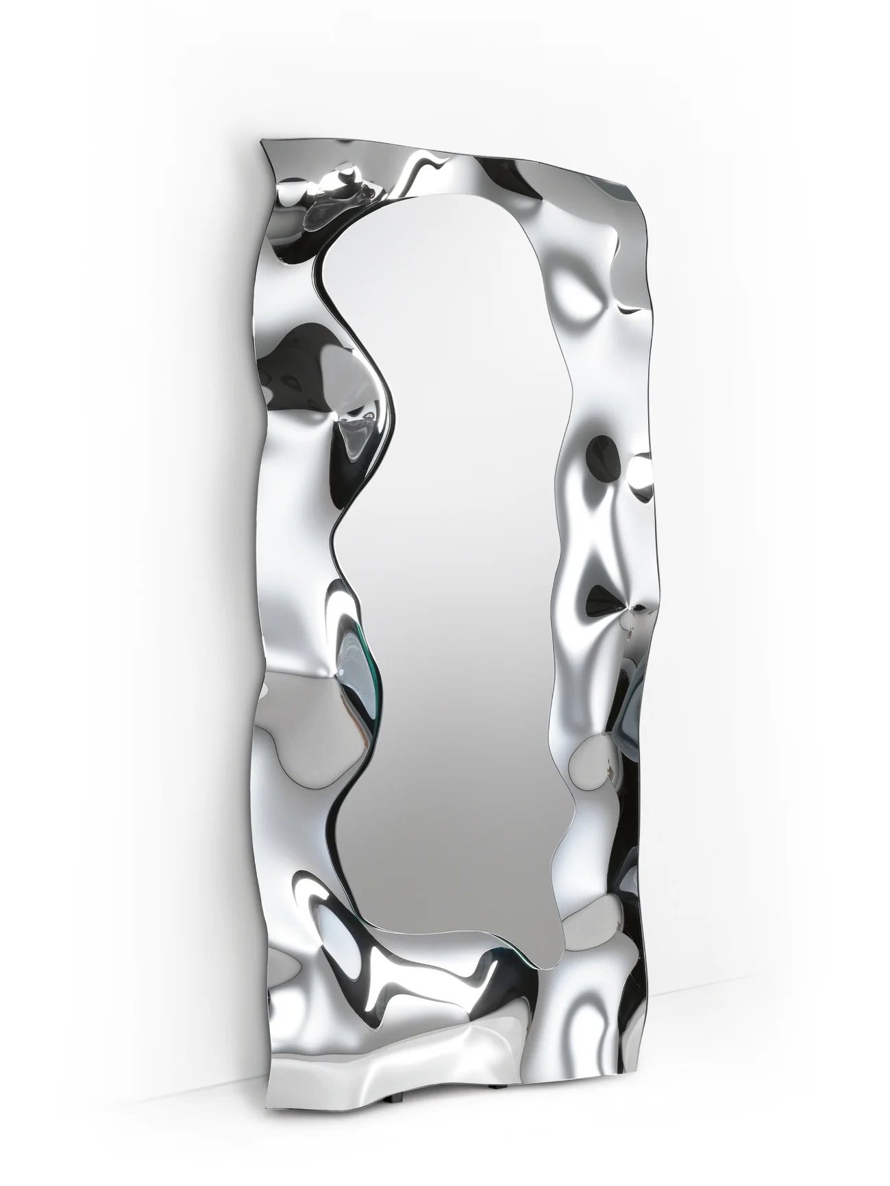 FIAM CHRISTINE Wandspiegel Eleganter Wandspiegel CHRISTINE aus geschmolzenem Glas Design von Helidon Xhixha & Dante O. Benini-Luca Gonzo Versilberte, geschmolzene Spiegelfläche mit 6 mm flacher Ausführung. Der rückseitige Rahmen aus lackiertem Metall sorgt für Stabilität und eine hochwertige Optik. Flexibel einsetzbar – sowohl vertikal als auch horizontal aufhängbar.Die Schmiedenspuren sind ein eigentuemliches und unverwechselbares Merkmal des Artikels und garantieren die handwerkliche Kunstfertigkeit vom Objekt.Bitte beachten Sie: Die Ausführungen in Rauch- oder Bronzeglas beziehen sich ausschließlich auf den Rahmen – die Spiegelfläche bleibt klar versilbert. Für weitere Informationen und weitere Varianten der Spiegelfläche steht Ihnen unser Kundenservice gerne zur Verfügung.Netto-Gewicht: 28 kg bis 48 kg Gegen Aufpreis erhältlich in Rauchglas und Bronzeglas