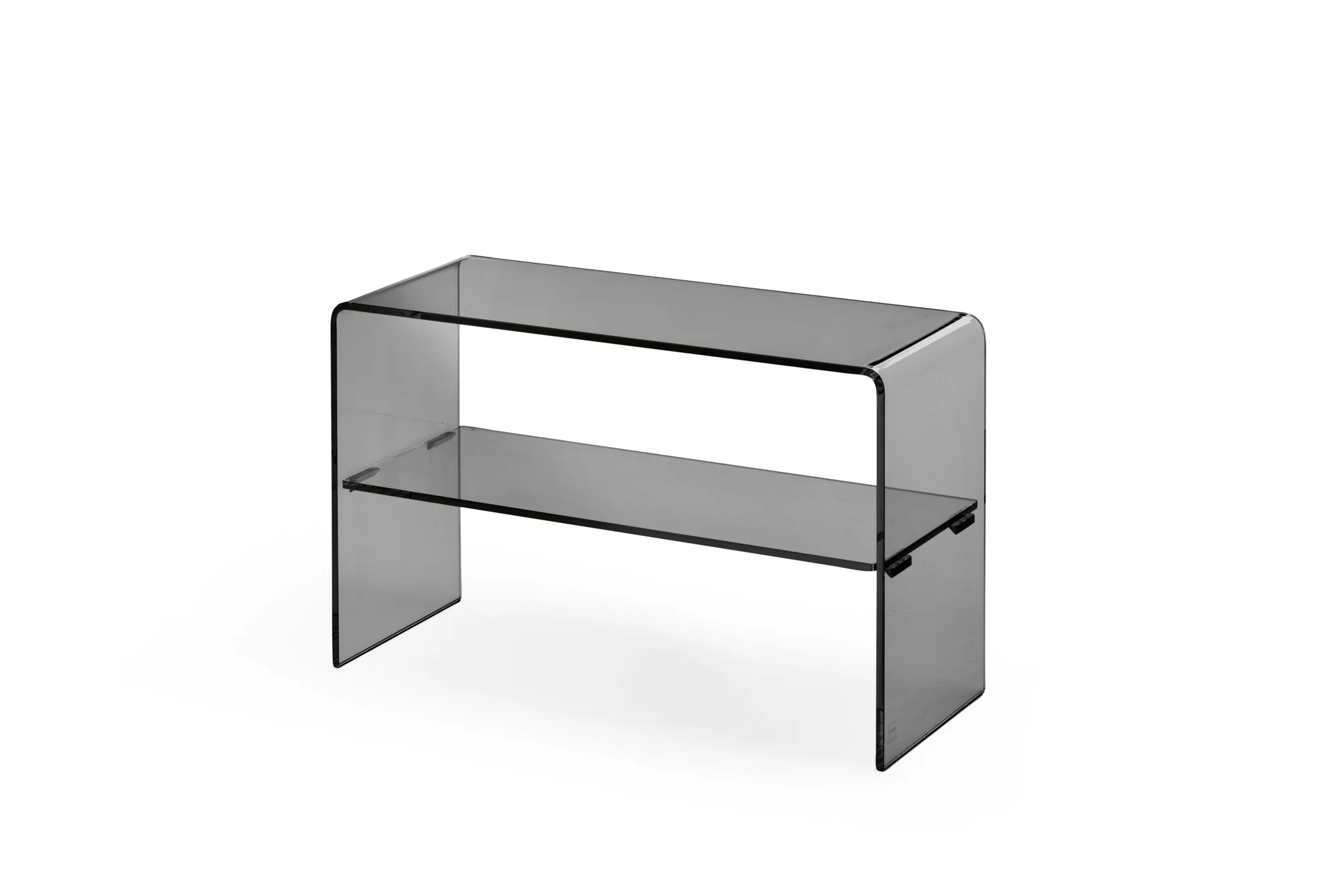 FIAM CHARLOTTE CONSOLLE Kommode CHARLOTTE CONSOLLE Kommode – Design von PROSPERO RASULOEntdecken Sie die eleganten Design-Kommode aus hochwertigem, 15 mm starkem, gebogenem Glas – ein echtes Statement moderner Wohnkultur. Mit ihrem puristischen Look und der sanft geschwungenen Form fügt sie sich harmonisch in jedes Ambiente ein. Entworfen vom renommierten Designer Prospero Rasulo (eingetragenes Modell), verbindet dieses Möbelstück Ästhetik mit Alltagstauglichkeit: Die Glasplatte trägt bis zu 50 kg – ideal für Lampe, Bücher oder dekorative Accessoires. Die Tragfähigkeit des Fachbodens beträgt bis zu 6 kgGebogener Fachboden aus geätztem 6 mm-starkem GlasL x B x H in cm: 112 x 36 x 80 cm Minimalistisch, modern und dennoch funktional – diese Kommode überzeugt durch ihr einzigartiges Design und ihre Alltagstauglichkeit.