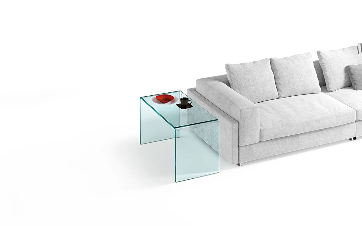 FIAM CHARLOTTE DE NUIT Nachttisch CHARLOTTE DE NUIT Nachttisch – Design von PROSPERO RASULOEntdecken Sie den eleganten Design-Nachttisch aus hochwertigem, 8 mm starkem, gebogenem Glas – ein echtes Statement moderner Wohnkultur. Mit seinem puristischen Look und der sanft geschwungenen Form fügt er sich harmonisch in jedes Schlafzimmerambiente ein. Entworfen vom renommierten Designer Prospero Rasulo (eingetragenes Modell), verbindet dieses Möbelstück Ästhetik mit Alltagstauglichkeit: Die Tischplatte trägt bis zu 12 kg – ideal für Lampe, Bücher oder dekorative Accessoires. Die Tragfähigkeit des Fachbodens beträgt bis zu 4 kgL x B x H in cm: 51 x 40 x 54 cm Minimalistisch, modern und dennoch funktional – dieser Nachttisch überzeugt durch sein einzigartiges Design und seine Alltagstauglichkeit.