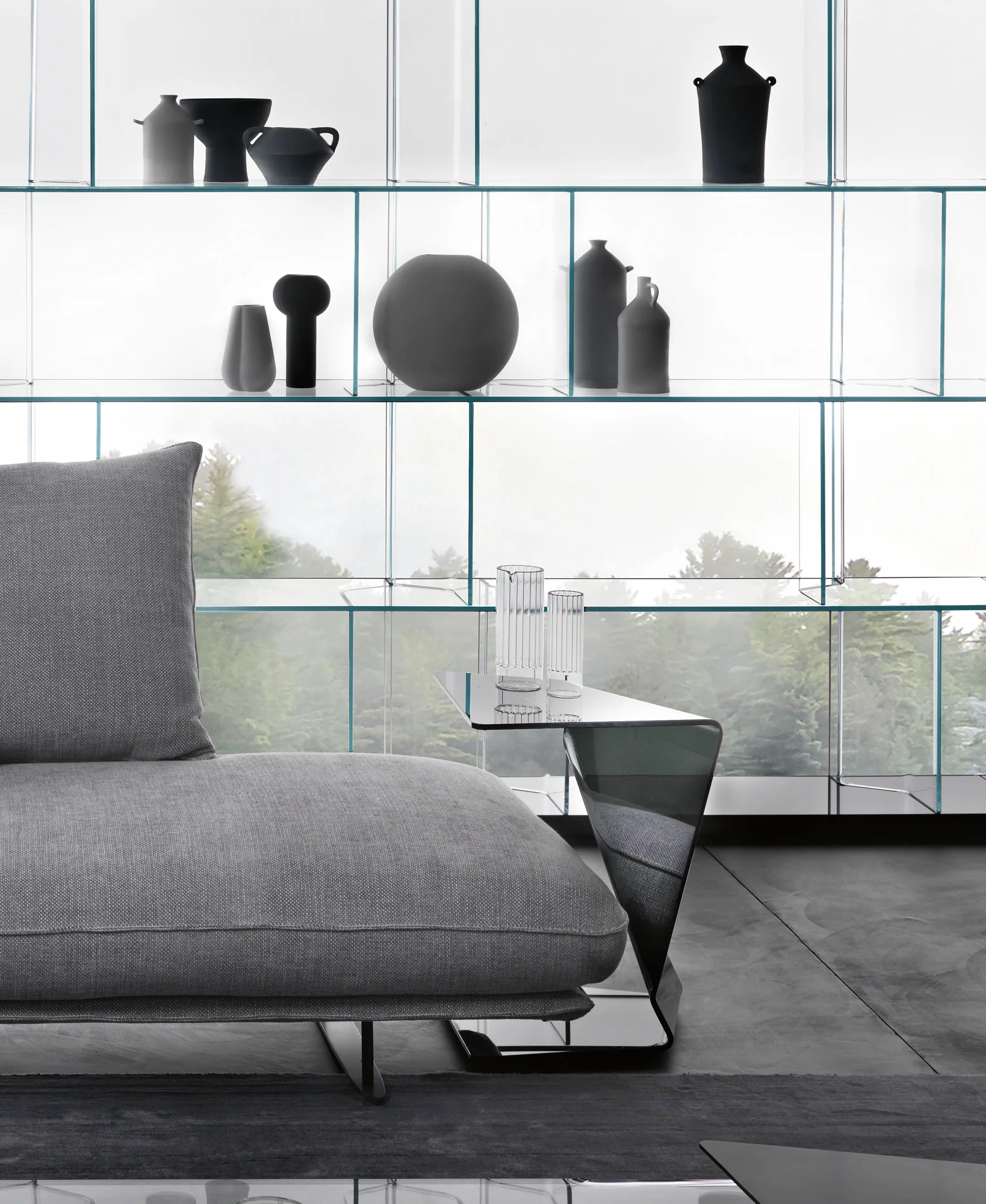 FIAM INORI Regalsystem Interessieren Sie sich für das Regalsystem? Unser Kundenservice hilft Ihnen gerne weiter und berät Sie persönlich – wir freuen uns auf Ihre Anfrage!INORI Regalsystem – Design von SETSU & SHINOBU ITO Dieses modulare Regalsystem aus hochwertigem Glas oder edlem Holz überzeugt durch maximale Vielseitigkeit und moderne Eleganz. Ob als Bücherregal, Ausstellungsfläche oder TV-Element – die Gestaltungsmöglichkeiten sind nahezu grenzenlos. Dank der cleveren Modulbauweise lässt sich das System frei kombinieren – als stilvolles Wandregal oder freistehend im Raum. Die Stützen können flexibel auf jedem Fachboden positioniert werden, dank eines durchdachten Führungs- und Befestigungsmoduls. Die stabile Laufschiene aus schwarz eloxiertem Aluminium verleiht dem System nicht nur einen eleganten Look, sondern sorgt auch für höchste Belastbarkeit: Tragkraft pro Fachboden: bis zu 80 kg Gesamttragfähigkeit der Struktur: bis zu 400 kg Maximaler Abstand zwischen den Stützen: 130 cm Maximaler Überstand der Fachböden: 35 cm (zwischen äußerer Stütze und Außenkante) Ein intelligentes, belastbares und ästhetisch überzeugendes Regalsystem – für alle, die Flexibilität mit Design verbinden möchten.