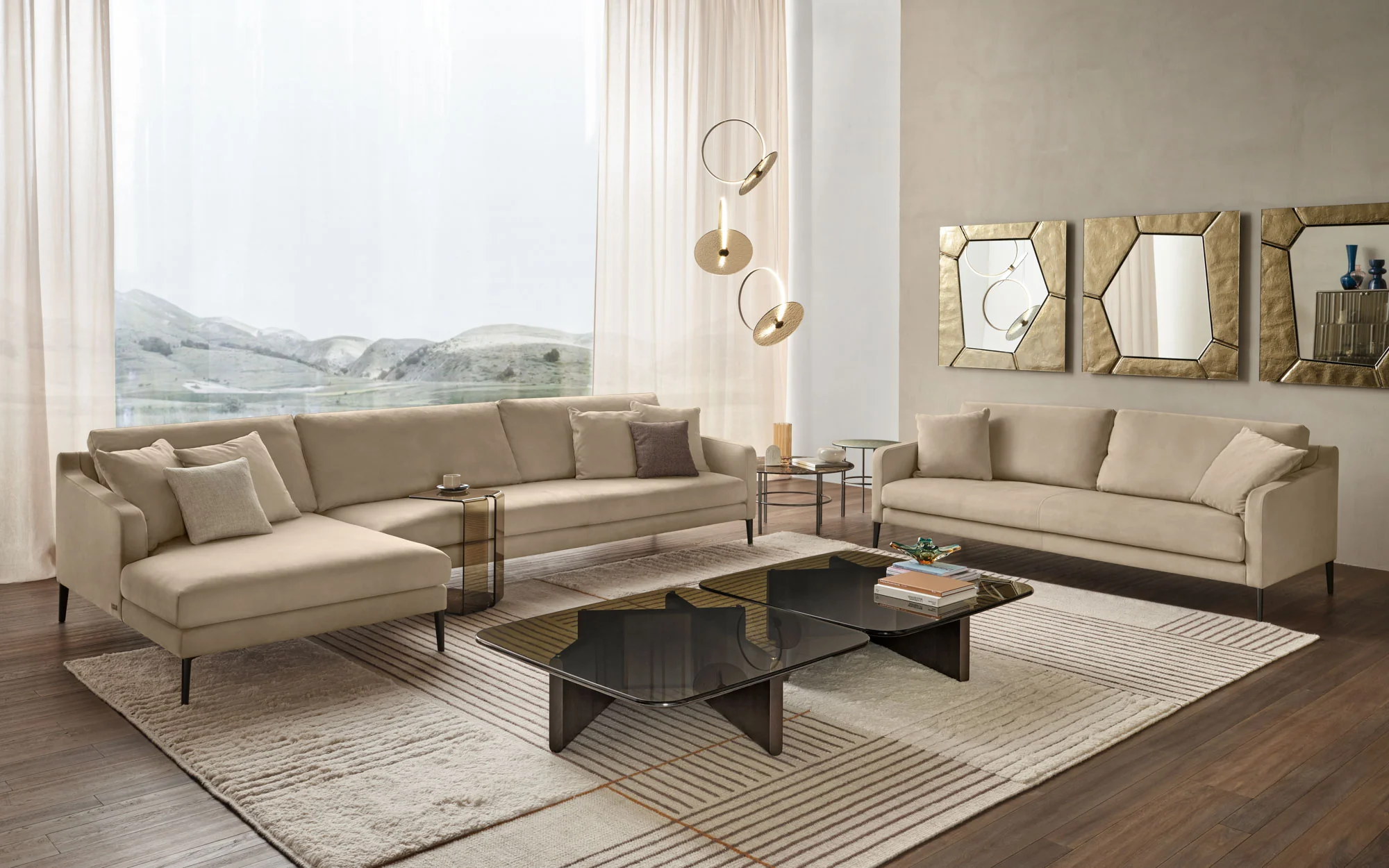 FIAM HALO Couchtisch • verschiedene Größen HALO Couchtisch – Design von FRANCESCA LANZAVECCHIAHALO Couchtisch von FIAM – modernes Design mit Charakter. Der HALO Couchtisch von FIAM überzeugt durch klare Linien, hochwertige Materialien und eine besondere Verarbeitung. Die 10 mm starke Tischplatte aus geschmolzenem und gehärtetem Glas ist in den Varianten Rauchglas oder Bronzeglas erhältlich. Alternativ ist HALO auch mit einer edlen Marmorplatte verfügbar – für einen besonders exklusiven Look. Das Untergestell aus Metall mit einer brunierten Messingoberfläche sorgt für Stabilität und verleiht dem Tisch einen eleganten, warmen Akzent. Ob in modernem Ambiente oder als stilvoller Kontrast zu klassischen Elementen – HALO passt sich flexibel an und wird zum Blickfang in jedem Wohnraum. Tragfähigkeit der Glasplatte: 30 kg