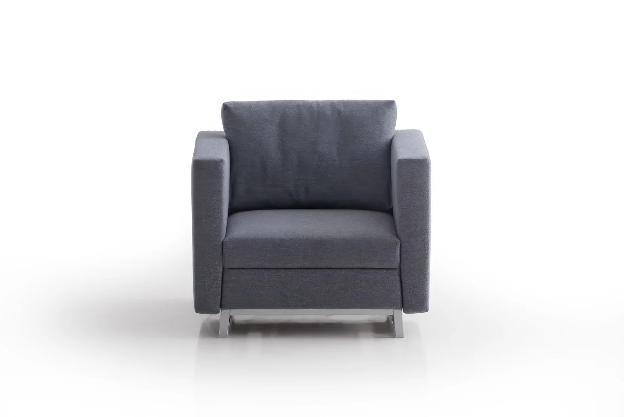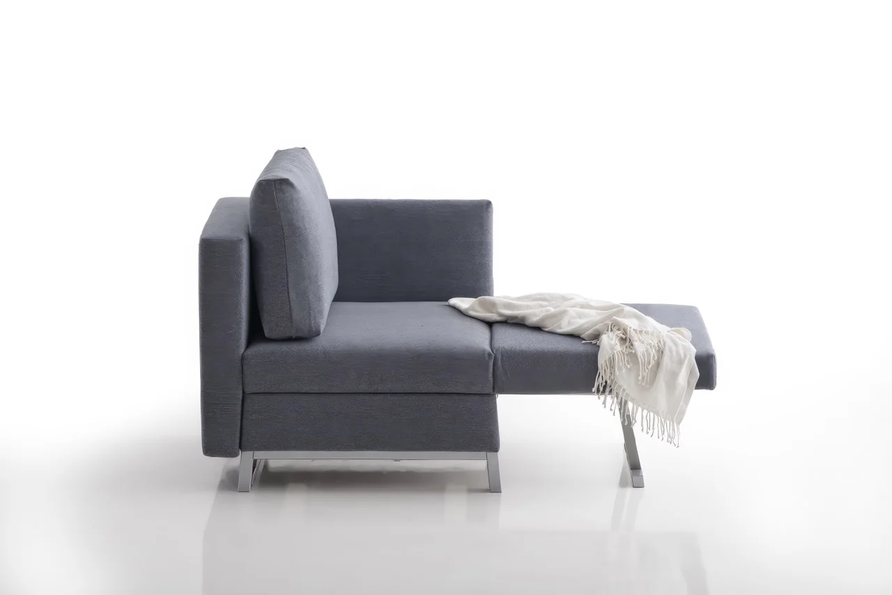 In seiner kompakten Ausgangsposition benötigt er kaum mehr Platz als ein Einzelsessel, bietet aber den Komfort eines vollwertigen Polstermöbels. Ideal für stilvolles Wohnen mit maximaler Funktionalität auf kleinem Raum.