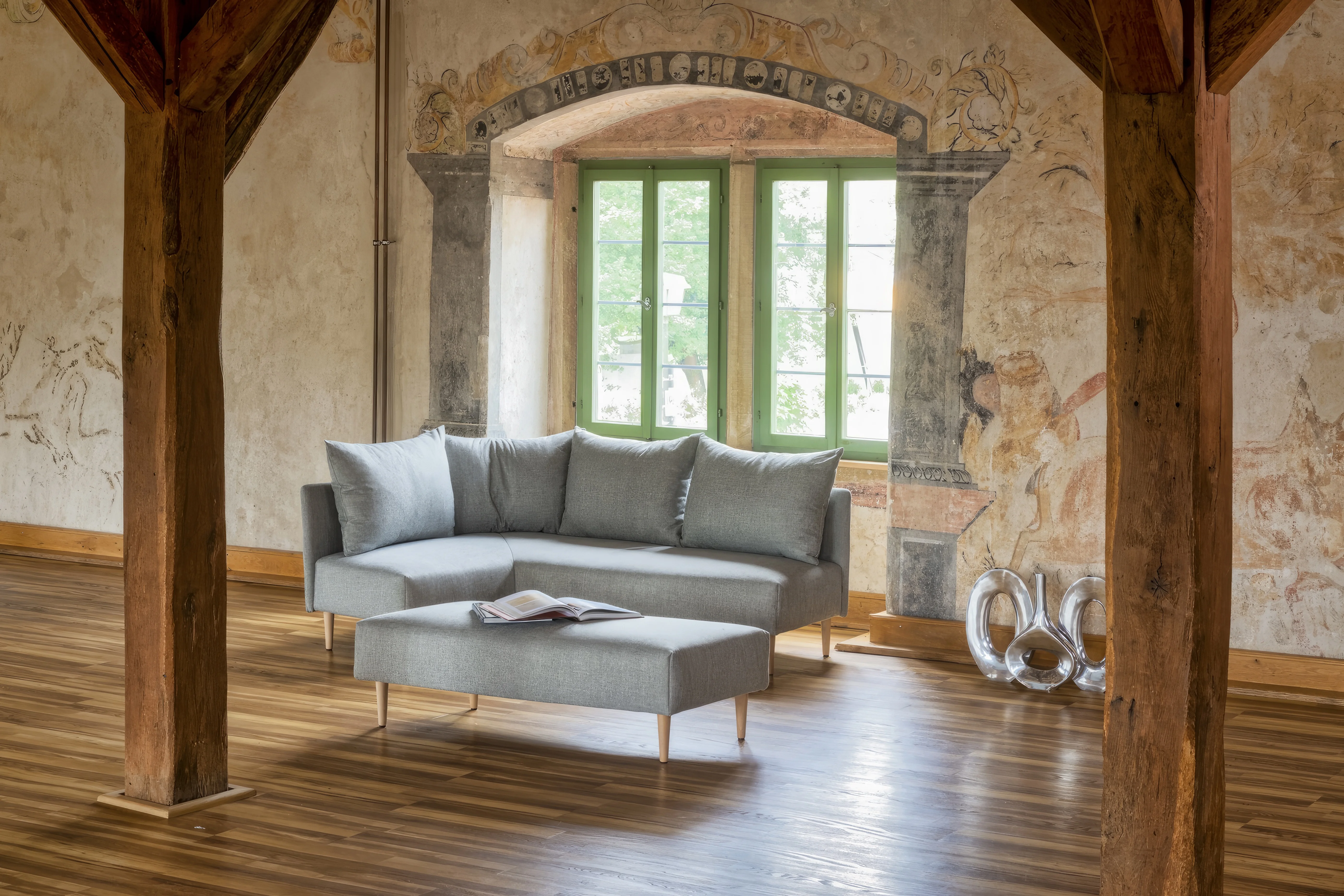 - Winkelsofa, Hocker (ohne Stauraum) und ohne Armlehne