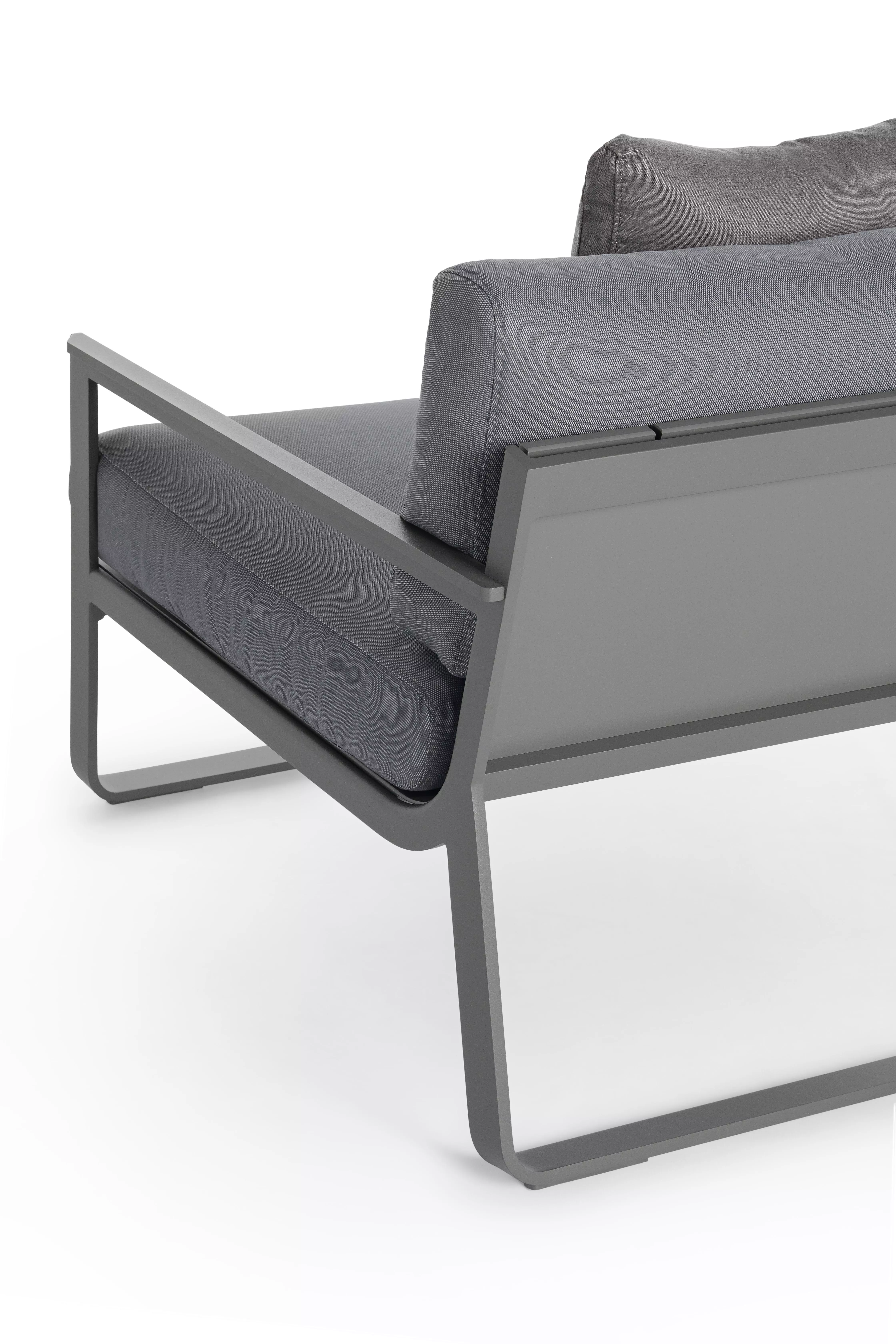 GANDIA BLASCO Timeless Loungesofa Mittelmodul rechts GANDIA BLASCO Timeless Loungesofa Mittelmodul • 85 × 84 cm • Timeless Gartensofa Hergestellt aus geschweißten thermolackierten Aluminiumprofilen und Teakholz. Polyurethanschaum mit wasserabweisendem Stoff überzogen. Abziehbarer Bezug. Timeless, ein Plus an Stil und Komfort für den Outdoor-Möbelbereich In seiner neuen Outdoor-Kollektion Timeless, die aus der Feder von José A. Gandía-Blasco Canales und Borja García stammt, setzt GANDIABLASCO ganz auf Schlichtheit und zeitlose Eleganz. Die zurückhaltenden und dennoch kraftvollen Formen des Designs sind von der rationalen Architektur des beginnenden 20. Jahrhunderts inspiriert und stehen für eine Ehrlichkeit, der die eigene Struktur Verzierung und Schmuck genug ist. Jedes einzelne Teil der Kollektion ist ein überaus gelungenes Beispiel für minuziöse Ausgewogenheit und maximalen Komfort. TIMELESS entstand als gemeinsames Projekt des Firmeninhabers José A. Gandía-Blasco Canales, der selbst für einige der bekanntesten Kollektionen wie beispielsweise SALER oder die Produktlinie ESPACIOS EXTERIORES verantwortlich zeichnet, und des jungen valenzianischen Designers Borja García, der durch seine Arbeiten im Bereich Industriedesign und Architektur bekannt wurde und auch die Linie RAW von GAN, der Designmarke von GANDIABLASCO für handgefertigte Artikel, entworfen hat. TIMELESS ist vollständig aus Aluminiumguss mit Thermolackierung gefertigt, weshalb die Teile sehr leicht sind und man sie trotz ihrer Größe problemlos transportieren kann. Die Ausführung in Iroko- Holz, einem wetterbeständigen Naturmaterial, ist hervorragend für den Einsatz im Outdoor-Bereich geeignet. Die Aluminiumstrukturen sind in allen Farbtönen der Farbpalette GANDIABLASCO und in einer neuen, speziell für die Kollektion entworfenen Linie erhältlich. Die große Auswahl an Outdoor- Bezügen unterschiedlichster Art macht TIMELESS zu einem ungemein anpassungsfähigen Produkt, das sowohl für den Contract-Bereich als auch für Privathäuser immer elegante Lösungen bietet. Die Kollektion besteht aus fünf modularen Sofas, die vielfache Kombinationen ermöglichen, sowie aus einer Liege, einem modularen Sitzkissen und verschiedenen Sesseltypen (Lehnsessel, niedriger Sessel etc.), einem hohen Tisch und Hockern. Das 1941 gegründete Familienunternehmen begann mit der Herstellung von Decken. Mitte der 80er Jahre widmete es sich dem Design von Teppichen. Seit 2000 konzentriert sich das Unternehmen ausschließlich auf Produkte für den Außenbereich. Es folgt kontinuierlich seiner expansionistischen Unternehmensstrategie und gilt als weltweiter Marktführer für Designermöbel für den Außenbereich. Das Unternehmen expandiert in der ganzen Welt und eröffnet in vielen Ländern Geschäfte und Showrooms. Die Zusammenarbeit mit international anerkannten Designern erweitert, bereichert und vervollständigt moderne Stilrichtungen von GANDIA BLASCO Gartenmöbel. Die GANDIA BLASCO Lounge Kollektion Timeless ist aus jeder Perspektive ein Blickfang. Die stilsicheren Linien und elegante Lounge Atmosphäre passen perfekt in jeden Wohnraum und laden zur Gastlichkeit ein. Gestell: thermolackiertes Aluminium Füllung: Polyurethan-Schaumstoff mit feuerfesten Stoffbezügen Leicht zu reinigen Wetterfest Maße: (B × T × SH/AH/H) 85 × 84 × 42/61/76 cm