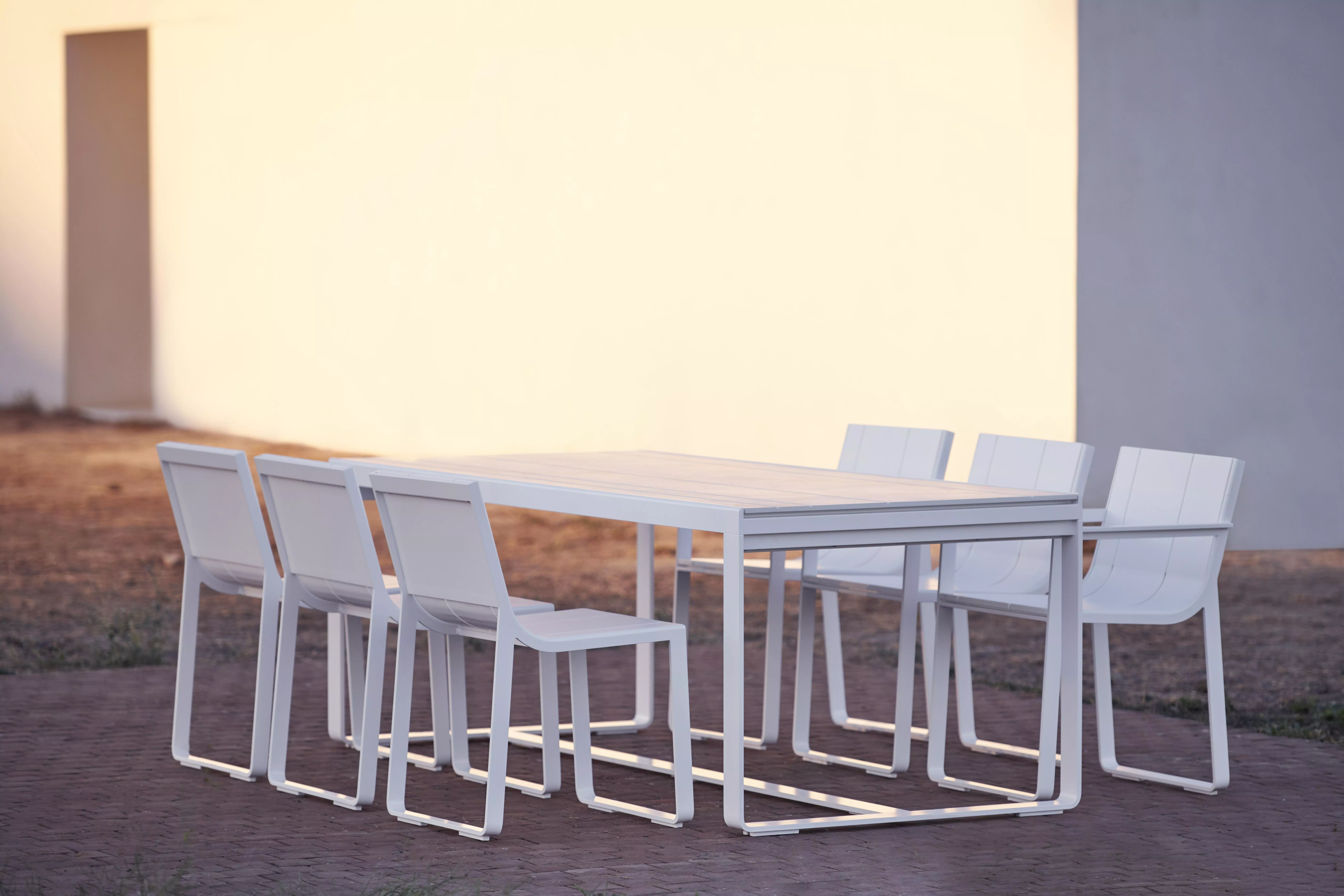 GANDIA BLASCO Timeless Gartentisch • Esstisch GANDIA BLASCO Timeless Gartentisch • 250 × 100 cm Hergestellt aus geschweißten thermolackierten Aluminiumprofilen. Tischplatte erhältlich in Decton®. Timeless, ein Plus an Stil und Komfort für den Outdoor-Möbelbereich In seiner neuen Outdoor-Kollektion Timeless, die aus der Feder von José A. Gandía-Blasco Canales und Borja García stammt, setzt GANDIABLASCO ganz auf Schlichtheit und zeitlose Eleganz. Die zurückhaltenden und dennoch kraftvollen Formen des Designs sind von der rationalen Architektur des beginnenden 20. Jahrhunderts inspiriert und stehen für eine Ehrlichkeit, der die eigene Struktur Verzierung und Schmuck genug ist. Jedes einzelne Teil der Kollektion ist ein überaus gelungenes Beispiel für minuziöse Ausgewogenheit und maximalen Komfort. TIMELESS entstand als gemeinsames Projekt des Firmeninhabers José A. Gandía-Blasco Canales, der selbst für einige der bekanntesten Kollektionen wie beispielsweise SALER oder die Produktlinie ESPACIOS EXTERIORES verantwortlich zeichnet, und des jungen valenzianischen Designers Borja García, der durch seine Arbeiten im Bereich Industriedesign und Architektur bekannt wurde und auch die Linie RAW von GAN, der Designmarke von GANDIABLASCO für handgefertigte Artikel, entworfen hat. TIMELESS ist vollständig aus Aluminiumguss mit Thermolackierung gefertigt, weshalb die Teile sehr leicht sind und man sie trotz ihrer Größe problemlos transportieren kann. Die Ausführung in Iroko- Holz, einem wetterbeständigen Naturmaterial, ist hervorragend für den Einsatz im Outdoor-Bereich geeignet. Die Aluminiumstrukturen sind in allen Farbtönen der Farbpalette GANDIABLASCO und in einer neuen, speziell für die Kollektion entworfenen Linie erhältlich. Die große Auswahl an Outdoor- Bezügen unterschiedlichster Art macht TIMELESS zu einem ungemein anpassungsfähigen Produkt, das sowohl für den Contract-Bereich als auch für Privathäuser immer elegante Lösungen bietet. Die Kollektion besteht aus fünf modularen Sofas, die vielfache Kombinationen ermöglichen, sowie aus einer Liege, einem modularen Sitzkissen und verschiedenen Sesseltypen (Lehnsessel, niedriger Sessel etc.), einem hohen Tisch und Hockern. Das 1941 gegründete Familienunternehmen begann mit der Herstellung von Decken. Mitte der 80er Jahre widmete es sich dem Design von Teppichen. Seit 2000 konzentriert sich das Unternehmen ausschließlich auf Produkte für den Außenbereich. Es folgt kontinuierlich seiner expansionistischen Unternehmensstrategie und gilt als weltweiter Marktführer für Designermöbel für den Außenbereich. Das Unternehmen expandiert in der ganzen Welt und eröffnet in vielen Ländern Geschäfte und Showrooms. Die Zusammenarbeit mit international anerkannten Designern erweitert, bereichert und vervollständigt moderne Stilrichtungen von GANDIA BLASCO Gartenmöbel. Die GANDIA BLASCO Lounge Kollektion Timeless ist aus jeder Perspektive ein Blickfang. Die stilsicheren Linien und elegante Lounge Atmosphäre passen perfekt in jeden Wohnraum und laden zur Gastlichkeit ein. Gestell: thermolackiertes Aluminium Tischplatte: HPL/Dekton® Leicht zu reinigen Wetterfest Maße: (B × T × H) 250 × 100 × 74 cm