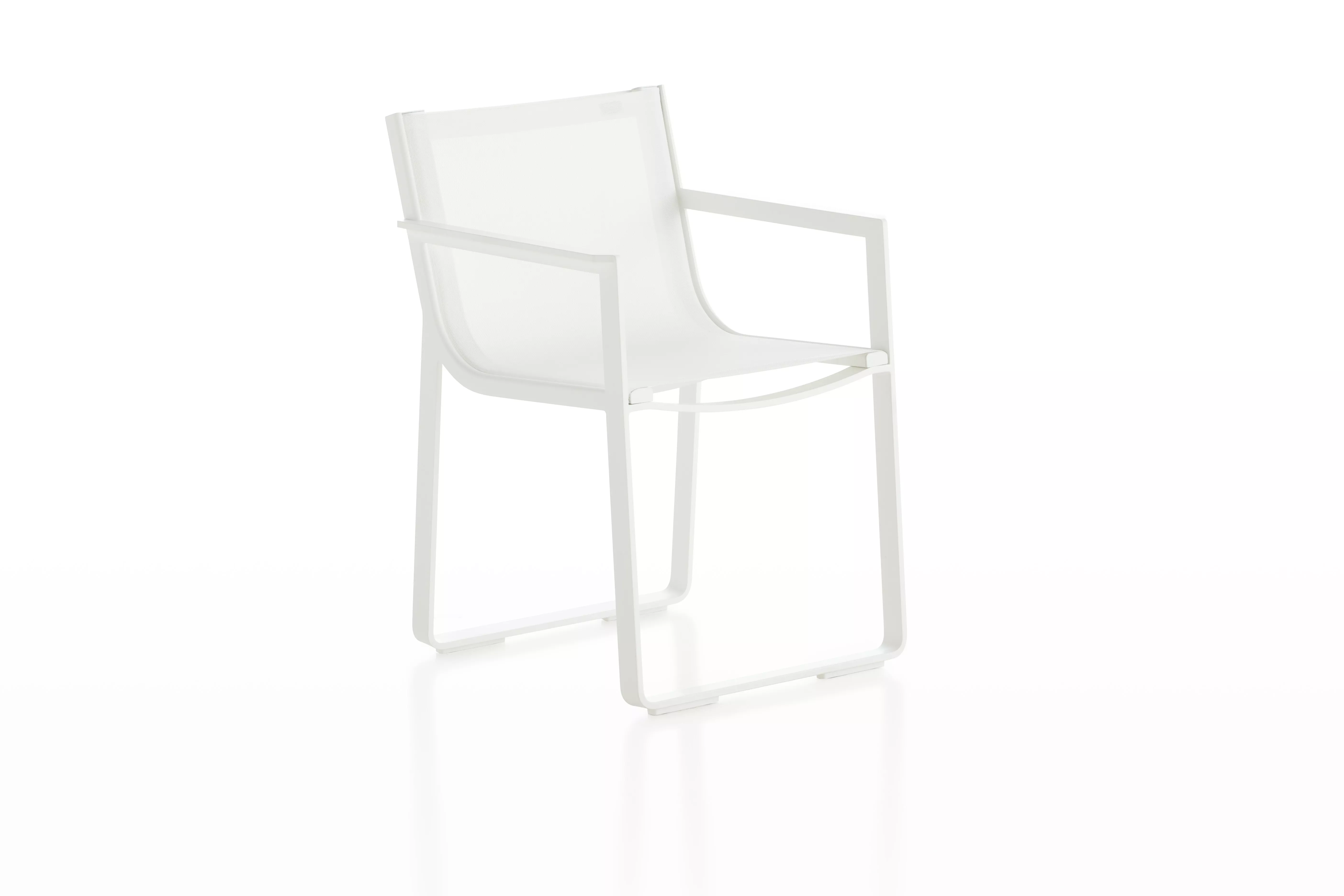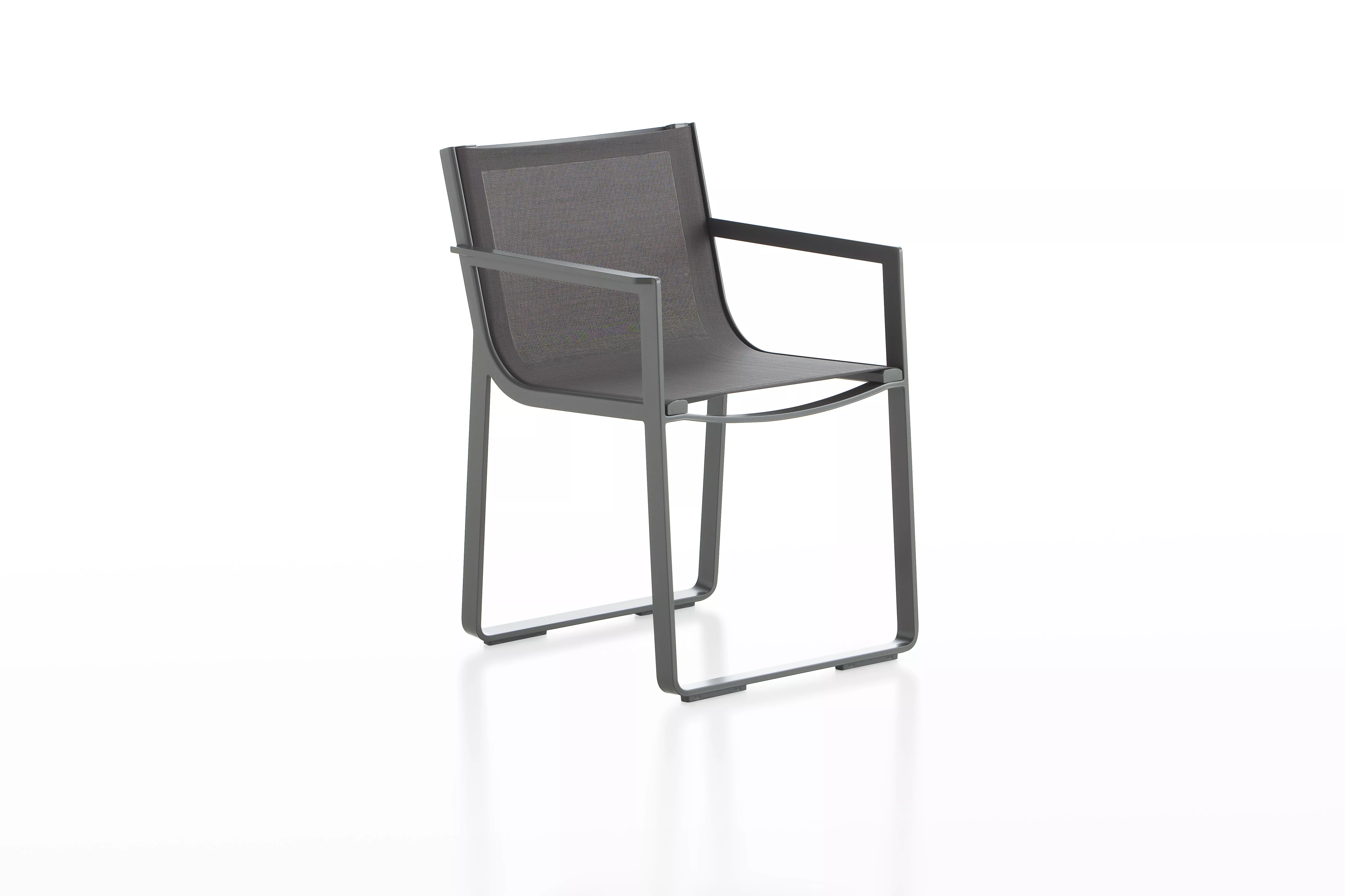 "FLAT TEXTIL ist die wesentliche und leichte Version der ursprünglichen FLAT-Kollektion. Unter Beibehaltung des strengen minimalistischen Designansatzes und des starken architektonischen Profils wird bei der Kollektion FLAT TEXTIL die Silhouette durch die Betonung der Rückenlehne und der Sitzfläche aus wasserfestem Textil leicht abgemildert.