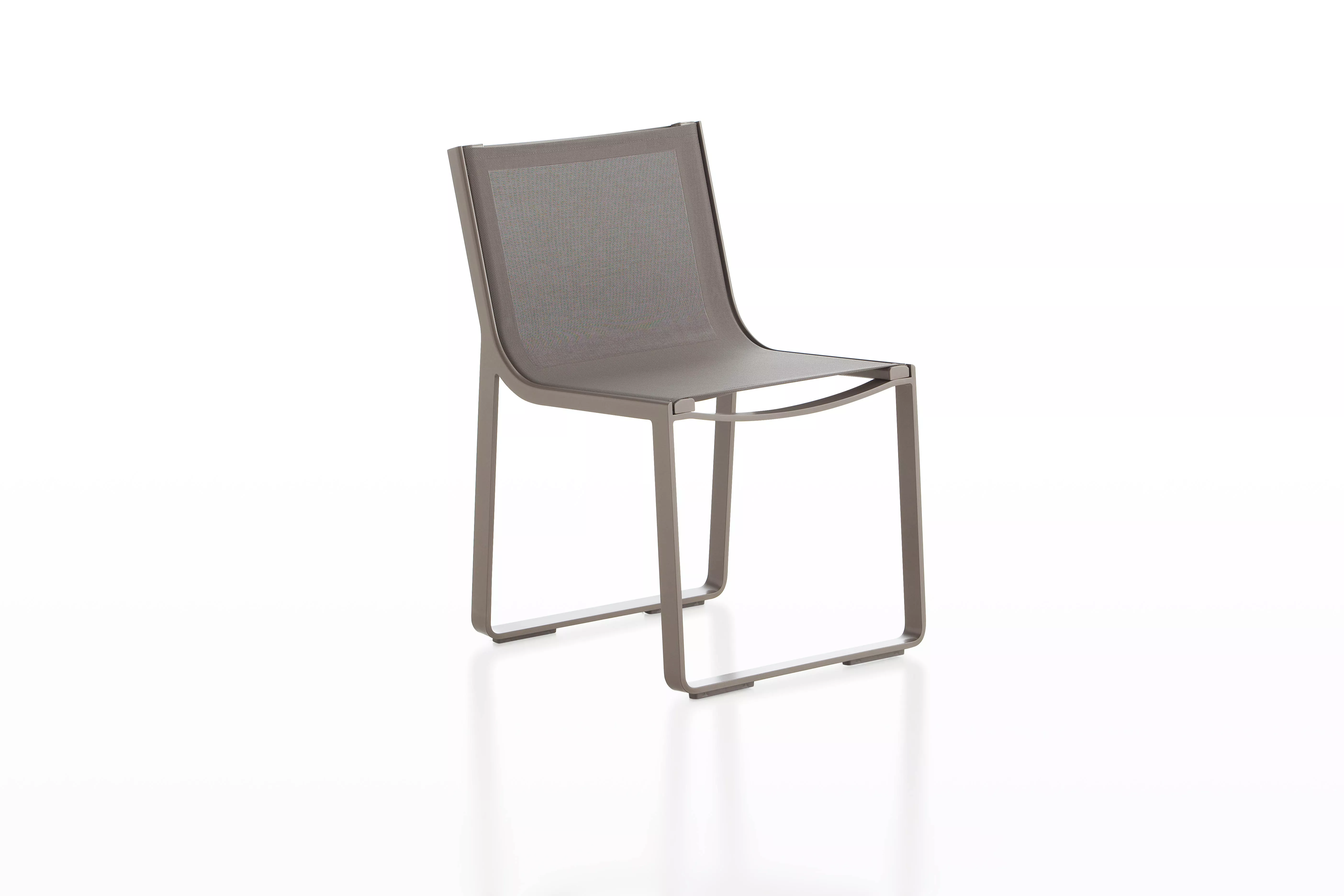 "FLAT TEXTIL ist die wesentliche und leichte Version der ursprünglichen FLAT-Kollektion. Unter Beibehaltung des strengen minimalistischen Designansatzes und des starken architektonischen Profils wird bei der Kollektion FLAT TEXTIL die Silhouette durch die Betonung der Rückenlehne und der Sitzfläche aus wasserfestem Textil leicht abgemildert.