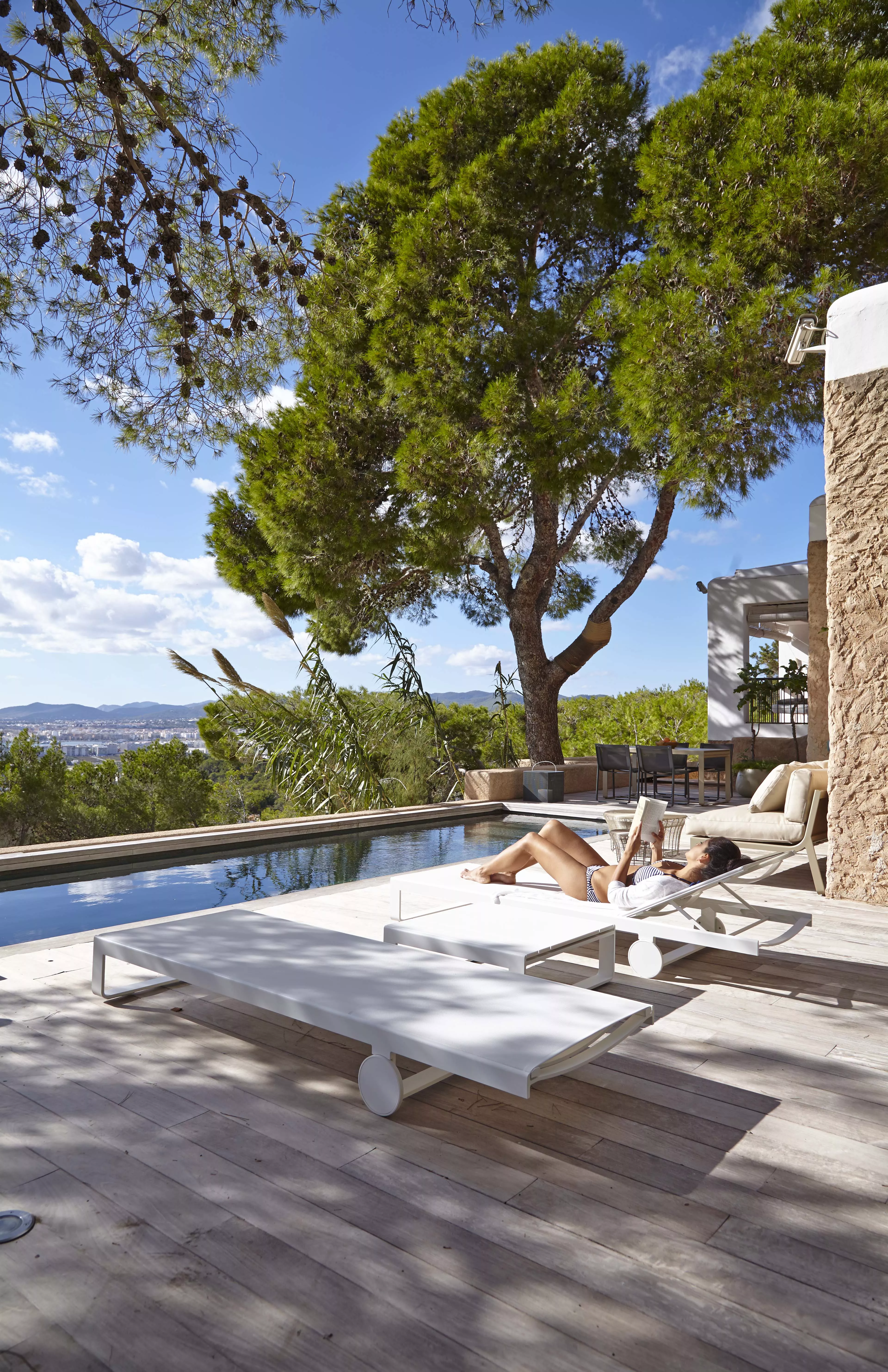 GANDIA BLASCO Timeless Outdoor Gartenliege GANDIA BLASCO Timeless Sonnenliege mit Rollen 70 × 200 cm • Timeless Gartenliege Hergestellt aus geschweißten thermolackierten Aluminiumprofilen und Teakholz. Polyurethanschaum mit wasserabweisendem Stoff überzogen. Abziehbarer Bezug. Timeless, ein Plus an Stil und Komfort für den Outdoor-Möbelbereich In seiner neuen Outdoor-Kollektion Timeless, die aus der Feder von José A. Gandía-Blasco Canales und Borja García stammt, setzt GANDIABLASCO ganz auf Schlichtheit und zeitlose Eleganz. Die zurückhaltenden und dennoch kraftvollen Formen des Designs sind von der rationalen Architektur des beginnenden 20. Jahrhunderts inspiriert und stehen für eine Ehrlichkeit, der die eigene Struktur Verzierung und Schmuck genug ist. Jedes einzelne Teil der Kollektion ist ein überaus gelungenes Beispiel für minuziöse Ausgewogenheit und maximalen Komfort. TIMELESS entstand als gemeinsames Projekt des Firmeninhabers José A. Gandía-Blasco Canales, der selbst für einige der bekanntesten Kollektionen wie beispielsweise SALER oder die Produktlinie ESPACIOS EXTERIORES verantwortlich zeichnet, und des jungen valenzianischen Designers Borja García, der durch seine Arbeiten im Bereich Industriedesign und Architektur bekannt wurde und auch die Linie RAW von GAN, der Designmarke von GANDIABLASCO für handgefertigte Artikel, entworfen hat. TIMELESS ist vollständig aus Aluminiumguss mit Thermolackierung gefertigt, weshalb die Teile sehr leicht sind und man sie trotz ihrer Größe problemlos transportieren kann. Die Ausführung in Iroko- Holz, einem wetterbeständigen Naturmaterial, ist hervorragend für den Einsatz im Outdoor-Bereich geeignet. Die Aluminiumstrukturen sind in allen Farbtönen der Farbpalette GANDIABLASCO und in einer neuen, speziell für die Kollektion entworfenen Linie erhältlich. Die große Auswahl an Outdoor- Bezügen unterschiedlichster Art macht TIMELESS zu einem ungemein anpassungsfähigen Produkt, das sowohl für den Contract-Bereich als auch für Privathäuser immer elegante Lösungen bietet. Die Kollektion besteht aus fünf modularen Sofas, die vielfache Kombinationen ermöglichen, sowie aus einer Liege, einem modularen Sitzkissen und verschiedenen Sesseltypen (Lehnsessel, niedriger Sessel etc.), einem hohen Tisch und Hockern. Das 1941 gegründete Familienunternehmen begann mit der Herstellung von Decken. Mitte der 80er Jahre widmete es sich dem Design von Teppichen. Seit 2000 konzentriert sich das Unternehmen ausschließlich auf Produkte für den Außenbereich. Es folgt kontinuierlich seiner expansionistischen Unternehmensstrategie und gilt als weltweiter Marktführer für Designermöbel für den Außenbereich. Das Unternehmen expandiert in der ganzen Welt und eröffnet in vielen Ländern Geschäfte und Showrooms. Die Zusammenarbeit mit international anerkannten Designern erweitert, bereichert und vervollständigt moderne Stilrichtungen von GANDIA BLASCO Gartenmöbel. Die GANDIA BLASCO Lounge Kollektion Timeless ist aus jeder Perspektive ein Blickfang. Die stilsicheren Linien und elegante Lounge Atmosphäre passen perfekt in jeden Wohnraum und laden zur Gastlichkeit ein. Gestell: thermolackiertes Aluminium Ausführung Armlehnen: Teakholz Füllung: Polyurethan-Schaumstoff mit feuerfesten Stoffbezügen Leicht zu reinigen Wetterfest Maße: (B × T × SH/H) 70 × 200 × 36/48 cm