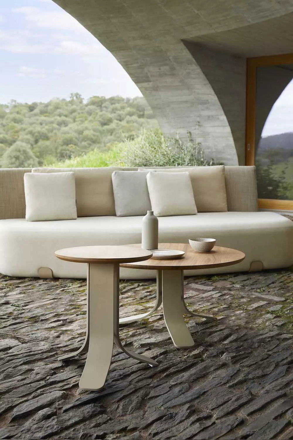 Die ISLA-Gartenmöbelkollektion ist die erste Zusammenarbeit von Sebastian Herkner für GANDIABLASCO. Mit ihr zollt der deutsche Designer den Momenten im Freien mit seiner Familie an der Küste Tribut. Dieses Designer-Möbelstück mit großer Persönlichkeit ist in der Lage, komfortable und einladende Umgebungen sowohl in einem Privathaus am Strand als auch in Hotels, Restaurants und anderen Vertragsflächen zu schaffen. Der Couchtisch D80 ist ein leichter Outdoor-Tisch, dessen Struktur aus pulverbeschichtetem Aluminium besteht und dank der Vielfalt an Farben in der ISLA-Kollektion individuell gestaltet werden kann. Die Tischplatte ist in Iroko-Holz oder in dem ultrabeständigen Material Dekton® von Cosentino erhältlich. Der ISLA-Couchtisch D80 ist ein exklusives Design von Sebastian Herkner für GANDIABLASCO.