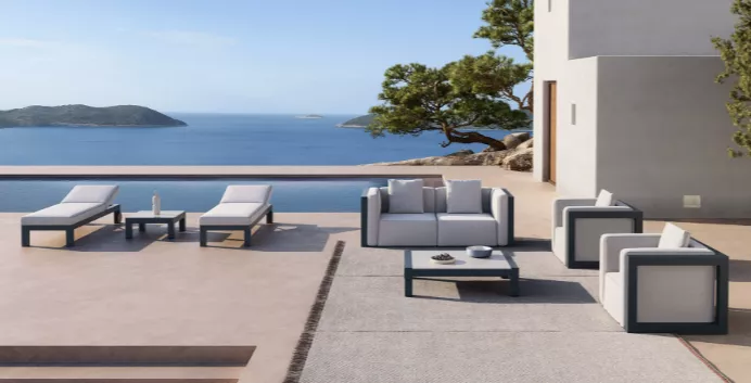 Die Outdoor-Möbelkollektion ISLABLANCA ist das Ergebnis einer seitdem anhaltenden Faszination für den mediterranen Lebensstil. Das ISLABLANCA 2-Sitzer Sofa ist eines der charakteristischsten Stücke dieser exklusiven Kollektion. Es besticht durch seine leichte Aluminiumstruktur und ist in verschiedenen Farboptionen erhältlich, darunter eine originelle metallisch blaue Variante, die die Seelandschaften der Insel Pitiusa widerspiegelt.
