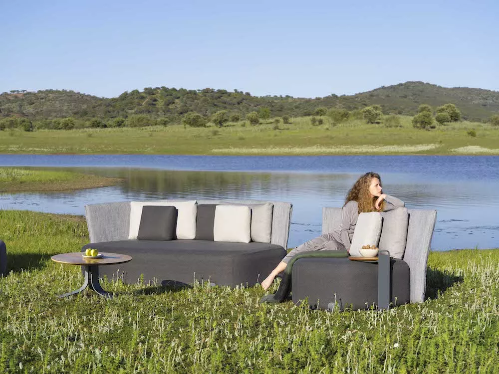 "Die ISLA-Module sind äußerst vielseitig und können auf verschiedene Arten angeordnet werden: einzeln als Outdoor-Liegen in verschiedenen Größen oder gemeinsam, um Räume für geselliges Beisammensein zu gestalten. ISLA bietet verschiedene Optionen, um gemütliche Atmosphären zu schaffen."