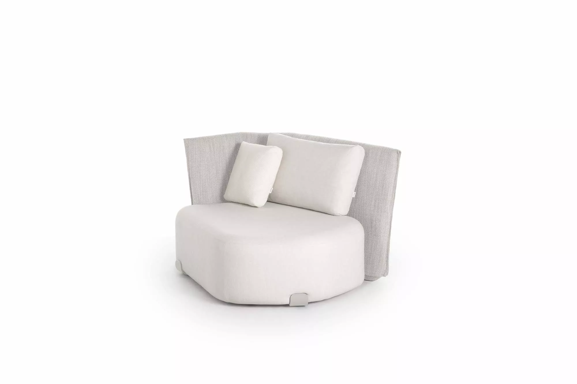 ISLA ist eine Kollektion von Gartenmöbeln, die vom Designer Sebastian Herkner geschaffen wurde. Der sinnliche Geist von ISLA basiert auf organischen und unregelmäßigen Formen, inspiriert von den Inseln an der spanischen Küste. Sie schaffen vielseitige Ruhezonen, die sich für jeden Raum sowohl drinnen als auch draußen eignen. Das Arosa-Modul ist ein Designer-Sofa mit einer gepolsterten Aluminiumstruktur. Die Polyurethanschaumbasis macht es zu einem widerstandsfähigen und komfortablen Outdoor-Möbelstück. Dank seines Charakters funktioniert dieses exklusive Design perfekt allein. Dennoch lädt Arosa auch dazu ein, sich in Kombination mit Menorca und Gomera, den anderen Sitzmodulen der ISLA-Kollektion, zu geselligen Zusammenkünften einzufinden. Das ISLA Arosa-Modul ist ein originelles Design von Sebastian Herkner für GANDIABLASCO.