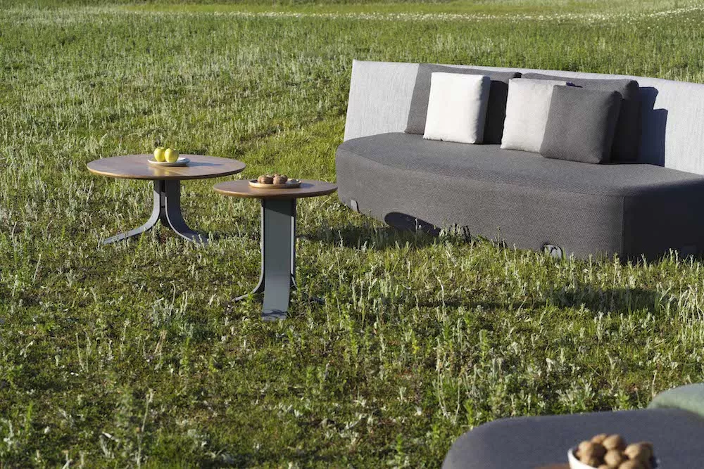 Die ISLA-Kollektion eignet sich sowohl für den Innen- als auch den Außenbereich. Ihr sorgfältiges Design bietet Komfort und Sicherheit. Das ideale Möbelstück, um in Gesellschaft zu genießen." Sebastian Herkner ISLA ist die erste Outdoor-Möbelkollektion, die vom Designer Sebastian Herkner für GANDIABLASCO entworfen wurde. Inspiriert von Kindheitserinnerungen, die er mit seiner Familie am Strand verbracht hat, schaffen die Designer-Möbelstücke der ISLA-Kollektion intime und einladende Umgebungen in jedem Raum. Der Couchtisch D50, der auch in anderen Größen und in einer höheren Version erhältlich ist, ist die perfekte Ergänzung zu den Sitzmodulen Gomera, Menorca und Arosa aus derselben Kollektion. Dieser Designer-Tisch besteht aus pulverbeschichtetem Aluminium und seine Tischplatte ist in zwei Ausführungen erhältlich: mit der innovativen, ultrakompakten Dekton®-Oberfläche von Cosentino oder mit einer natürlichen Note in Iroko-Holz. Der ISLA-Couchtisch D50 ist ein exklusives Design von Sebastian Herkner für GANDIABLASCO.