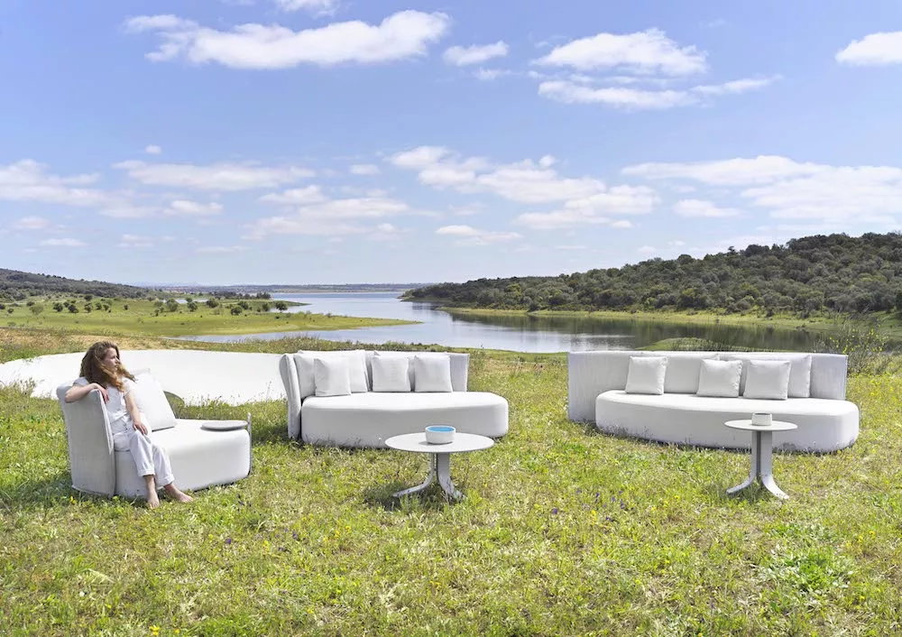 "ISLA ist deine gemütliche Outdoor-Insel. Mit GANDIABLASCO's hochwertigen Texturen und Stoffen wird dieses einzigartige Design in Form und Typologie zu etwas Besonderem."