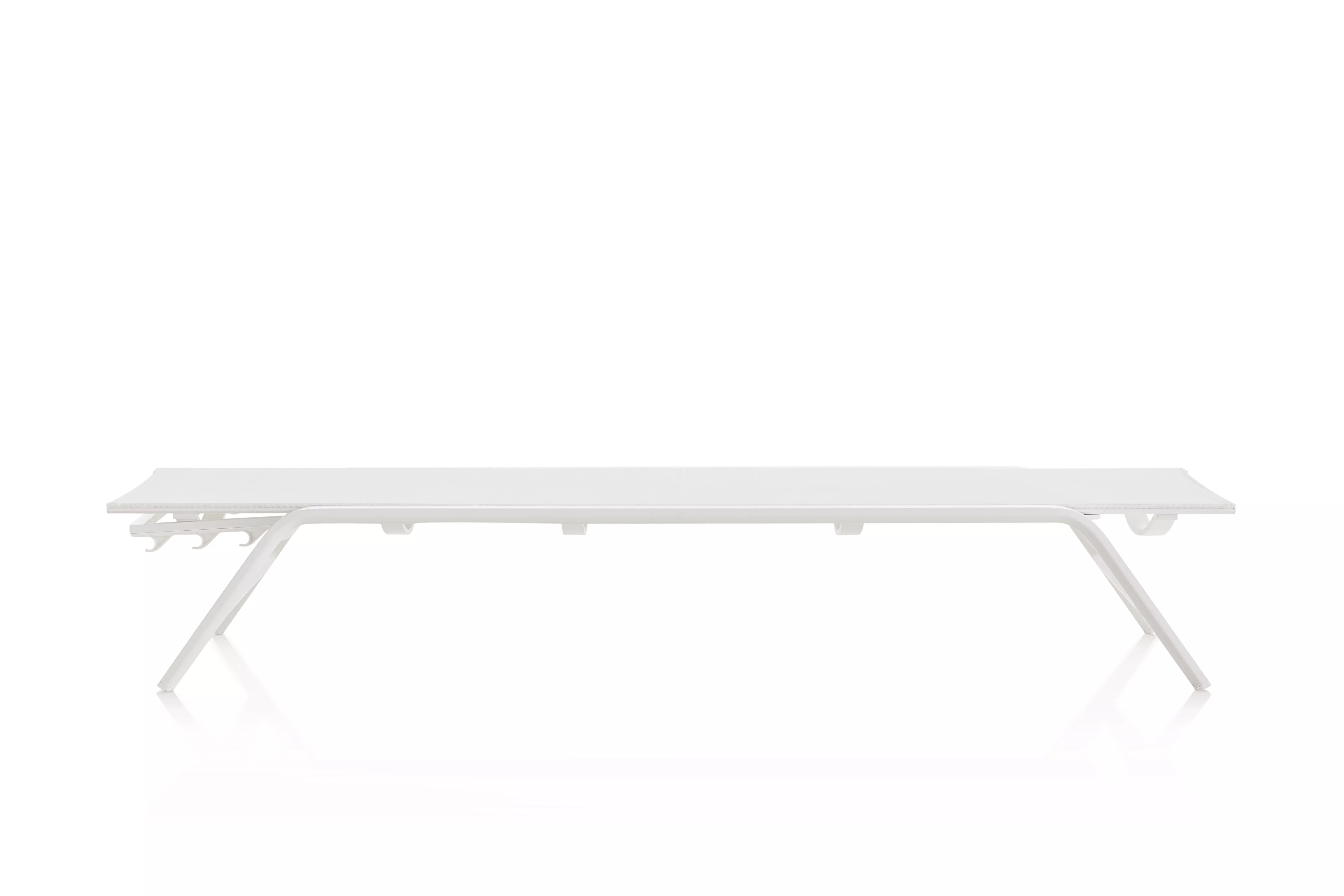 Die klaren und geradlinigen Strukturen der Kollektion sowie die verwendeten Materialien verleihen den Möbeln eine einfache, ausgewogene und unglaublich leichte Form. Das innovative Design von GANDIABLASCO verwendet selbsttragendes Gewebe über dem extrudierten Aluminiumkörper, um eine einfache Konstruktion mit Leichtigkeit und Komfort zu ermöglichen.