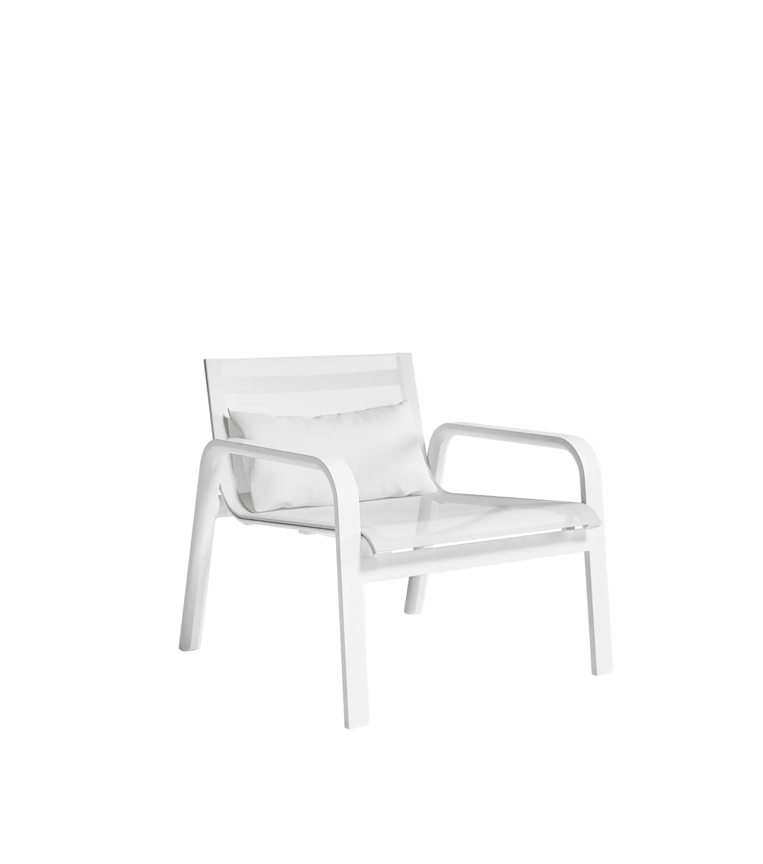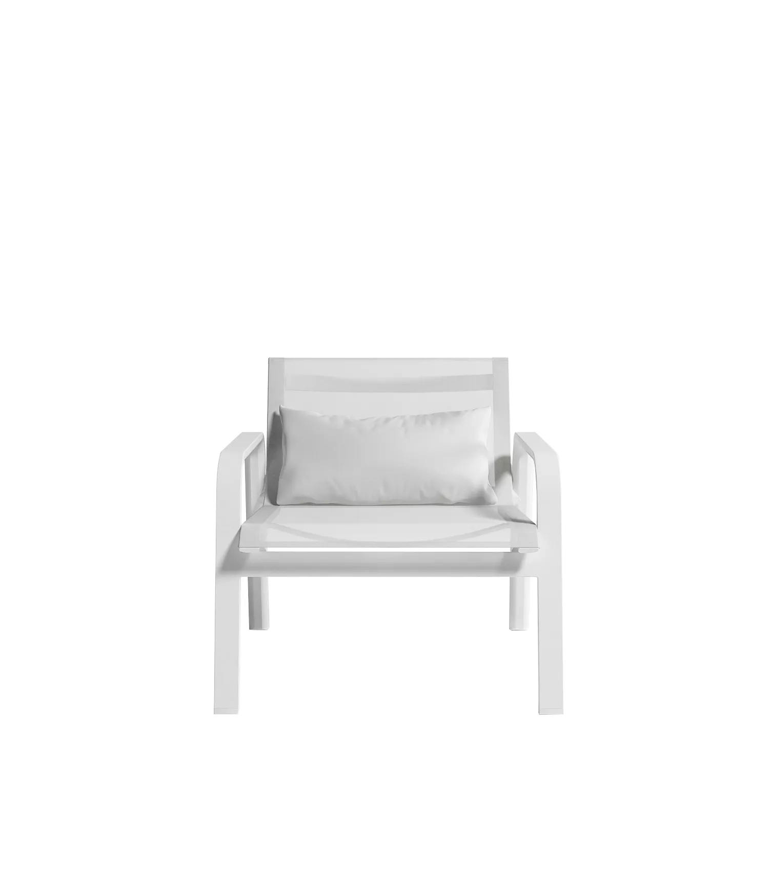 Die klaren und geradlinigen Strukturen der Kollektion sowie die verwendeten Materialien verleihen den Möbeln eine einfache, ausgewogene und unglaublich leichte Form. Das innovative Design von GANDIABLASCO verwendet selbsttragendes Gewebe über dem extrudierten Aluminiumkörper, um eine einfache Konstruktion mit Leichtigkeit und Komfort zu ermöglichen.