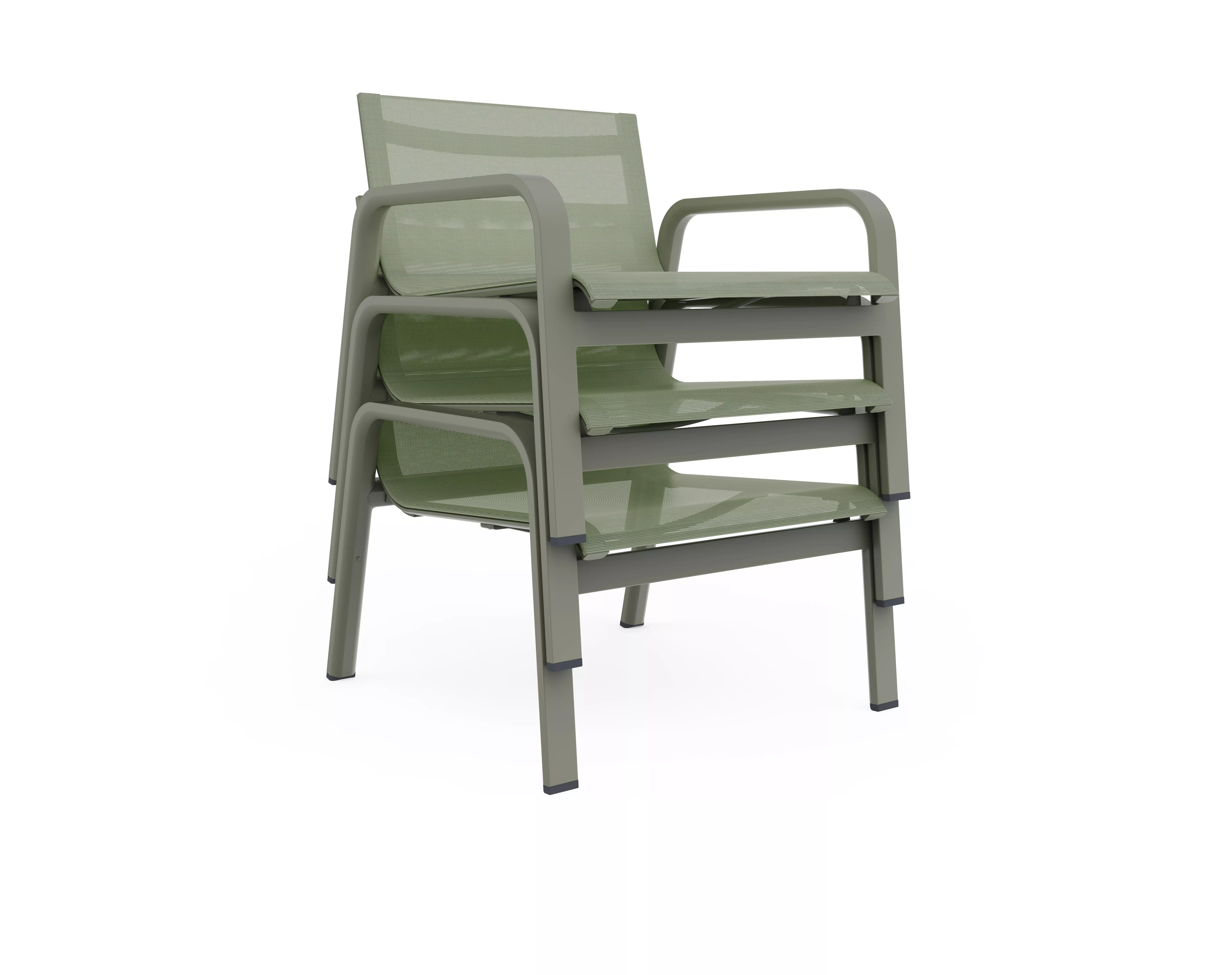 STACK ist eine stapelbare Outdoor-Möbelkollektion, die von der maritimen Welt inspiriert ist und Designelemente aus den 1960er und 1970er Jahren aufweist.