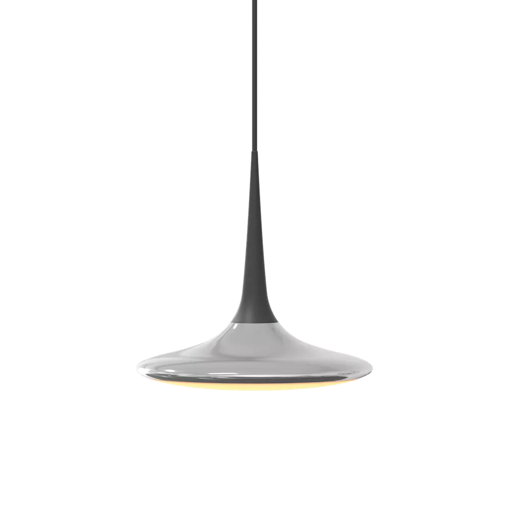 GRAU • NICEONE • Decken-/HängeleuchteGRAU, ein interdisziplinäres Team von 150 kreativen Köpfen, wird von den Künstlern Timon und Melchior Grau geleitet. Die Lichtskulpturen von GRAU werden weltweit in Museumsausstellungen präsentiert und insgesamt 89 ihrer Leuchten haben renommierte Designpreise gewonnen. GRAU entwickelte über 10 Jahre hinweg "Sunset Dimming", ein Licht, welches den natürlichen Sonnenuntergang nachahmt und eine beruhigende Wirkung auf Körper und Geist hat. Es unterstützt den natürlichen Bio-Rhythmus und die Melatoninproduktion, was die Entspannung fördert. Besonders am Abend und in der Nacht empfohlen, hat dieses warme Licht keinen Blauanteil, was sich positiv auf die Gesundheit auswirkt. Im Gegensatz zu kaltem und blauem Licht, welches den Schlaf-Wach-Zyklus stört, reguliert "Sunset Dimming" diesen Zyklus und fördert die Gesundheit. Natürlich integriert sich NICEONE mühelos in den Raum. Die unangestrebte Vollkommenheit in ihrer Einfachheit offenbart sich in ihrer unverkennbaren konischen Gestalt. Warm Dim: Warm Dim reguliert die Farbtemperatur des Lichts automatisch beim Dimmen. Aufdimmen für ein klares, strahlendes Licht und Abdimmen für ein sanftes Leuchten. Die Farbtemperatur beträgt bei maximaler Helligkeit 2700K und bei niedrigster Helligkeit warme 2200K. Produziert in Deutschland Farbwiedergabeindex CRI 90Leuchtmittel LEDLeuchtenlichtstrom: 620lmLichtverteilung: SymmetrischFarbtemperatur: 2700-2200KMaterial: Aluminium Oberfläche: PulverbeschichtetNennspannung: 220-240VLeistungsaufnahme:11WLeuchteneffizienz:56lm/WSchutzklasse: IDimensionen: Kopf: 4 Ø x 31 cm, Halterung: 7 Ø cm x 16.3 cm, Höhe: 200 cm