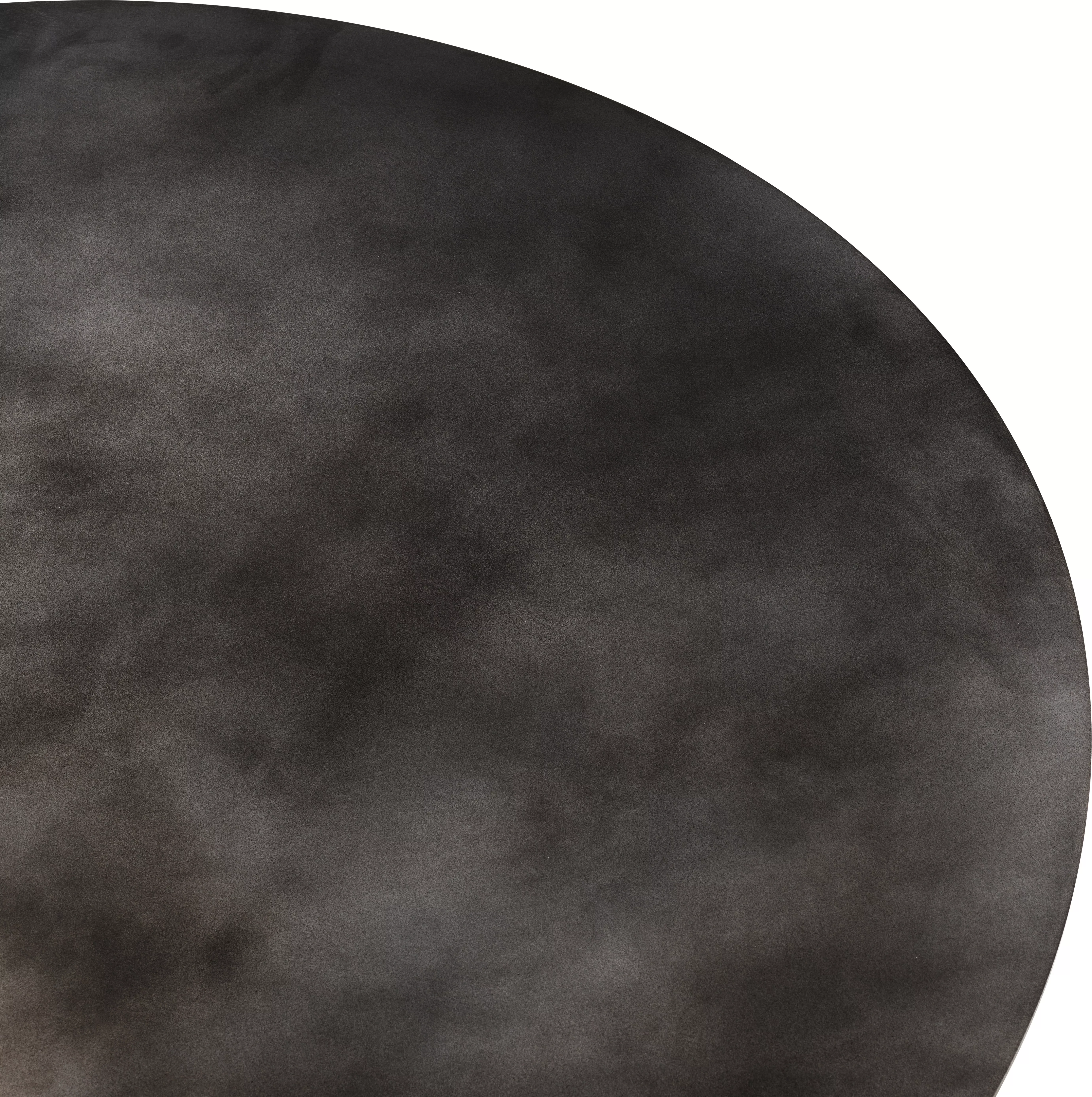 GUBI - EPIC Couchtisch • Rund GamFratesis Epic Table für GUBI, benannt nach den antiken epischen Gedichten, ist ein skulpturales Möbelstück, das von griechischen Säulen und römischer Architektur inspiriert ist. Ursprünglich in Italien aus Travertin gefertigt, markiert diese neue Variante das erste Mal, dass GamFratesi mit Stahlplatten arbeitet. Diese Platten durchlaufen Veredelungsprozesse wie Verzinkung, Lackierung und aufwendige Handfinish-Arbeiten, um jeder Tischplatte eine einzigartige Oberflächenstruktur zu verleihenWährend die monolithische Form des Tisches erhalten bleibt, strahlt er nun einen industriellen Charakter aus und offenbart bei jeder Benutzung neue Details. Diese Kollektion verleiht privaten Räumen Persönlichkeit und bringt ein faszinierendes Gefühl von Gewicht und Haptik in öffentliche und gastfreundliche Umgebungen, in denen robuste Oberflächen außergewöhnliche Haltbarkeit bieten. Die Epic Table Collection bietet verschiedene Höhen und Durchmesser, sodass ein einzelner monochromatischer Tisch eigenständig stehen oder harmonisch in dynamischen Gruppen aus verschiedenen Materialien, Höhen und Farben kombiniert werden kann.Während die monolithische Form des Tisches erhalten bleibt, strahlt er nun einen industriellen Charakter aus und offenbart bei jeder Benutzung neue Details. Diese Kollektion verleiht privaten Räumen Persönlichkeit und bringt ein faszinierendes Gefühl von Gewicht und Haptik in öffentliche und gastfreundliche Umgebungen, in denen robuste Oberflächen außergewöhnliche Haltbarkeit bieten. Die Epic Table Collection bietet verschiedene Höhen und Durchmesser, sodass ein einzelner monochromatischer Tisch eigenständig stehen oder harmonisch in dynamischen Gruppen aus verschiedenen Materialien, Höhen und Farben kombiniert werden kann. Maße: 80 Durchmesser x H38 cm(Die Variante aus Travertin ist 0.5 cm höher)Auswahlmöglichkeit zwischen Stahl und Travertin