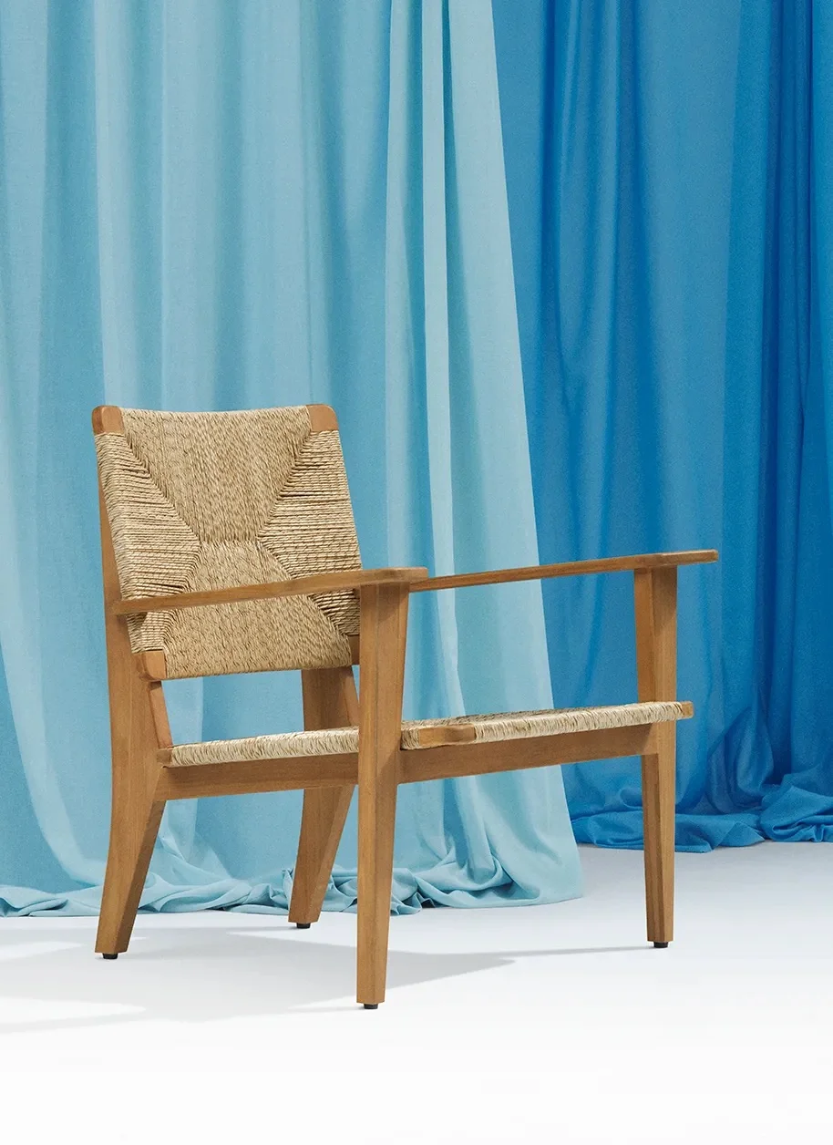 Gefertigt aus hochwertigem Natural Teak, strahlt der F-Chair Wärme und Beständigkeit aus. Die Kombination aus edlem Holz und kunstvoller Flechttechnik macht ihn zu einem zeitlosen Designobjekt – ideal für stilvolle Wohn- und Outdoor-Bereiche.