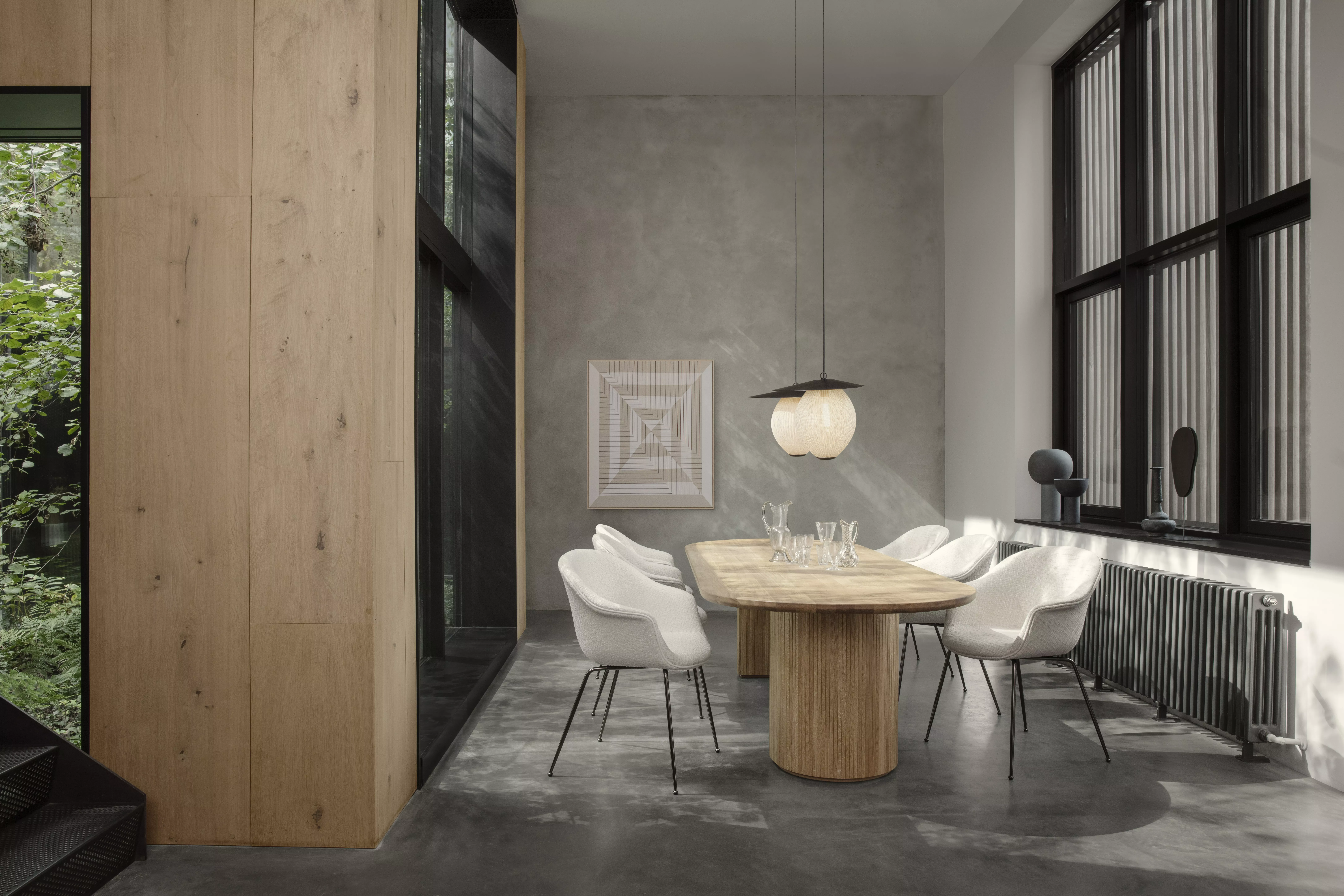 GUBI - EPIC Esstisch • Elliptical • Travertin GamFratesis Epic Table für GUBI, benannt nach den antiken epischen Gedichten, ist ein skulpturales Möbelstück, das von griechischen Säulen und römischer Architektur inspiriert ist. Ursprünglich in Italien aus Travertin gefertigt, markiert diese neue Variante das erste Mal, dass GamFratesi mit Stahlplatten arbeitet. Diese Platten durchlaufen Veredelungsprozesse wie Verzinkung, Lackierung und aufwendige Handfinish-Arbeiten, um jeder Tischplatte eine einzigartige Oberflächenstruktur zu verleihen.Während die monolithische Form des Tisches erhalten bleibt, strahlt er nun einen industriellen Charakter aus und offenbart bei jeder Benutzung neue Details. Diese Kollektion verleiht privaten Räumen Persönlichkeit und bringt ein faszinierendes Gefühl von Gewicht und Haptik in öffentliche und gastfreundliche Umgebungen, in denen robuste Oberflächen außergewöhnliche Haltbarkeit bieten. Die Epic Table Collection bietet verschiedene Höhen und Durchmesser, sodass ein einzelner monochromatischer Tisch eigenständig stehen oder harmonisch in dynamischen Gruppen aus verschiedenen Materialien, Höhen und Farben kombiniert werden kann.Während die monolithische Form des Tisches erhalten bleibt, strahlt er nun einen industriellen Charakter aus und offenbart bei jeder Benutzung neue Details. Diese Kollektion verleiht privaten Räumen Persönlichkeit und bringt ein faszinierendes Gefühl von Gewicht und Haptik in öffentliche und gastfreundliche Umgebungen, in denen robuste Oberflächen außergewöhnliche Haltbarkeit bieten. Die Epic Table Collection bietet verschiedene Höhen und Durchmesser, sodass ein einzelner monochromatischer Tisch eigenständig stehen oder harmonisch in dynamischen Gruppen aus verschiedenen Materialien, Höhen und Farben kombiniert werden kann. Maße: 240 x 120 x 74 cm Ausführung: Natural White Travertin