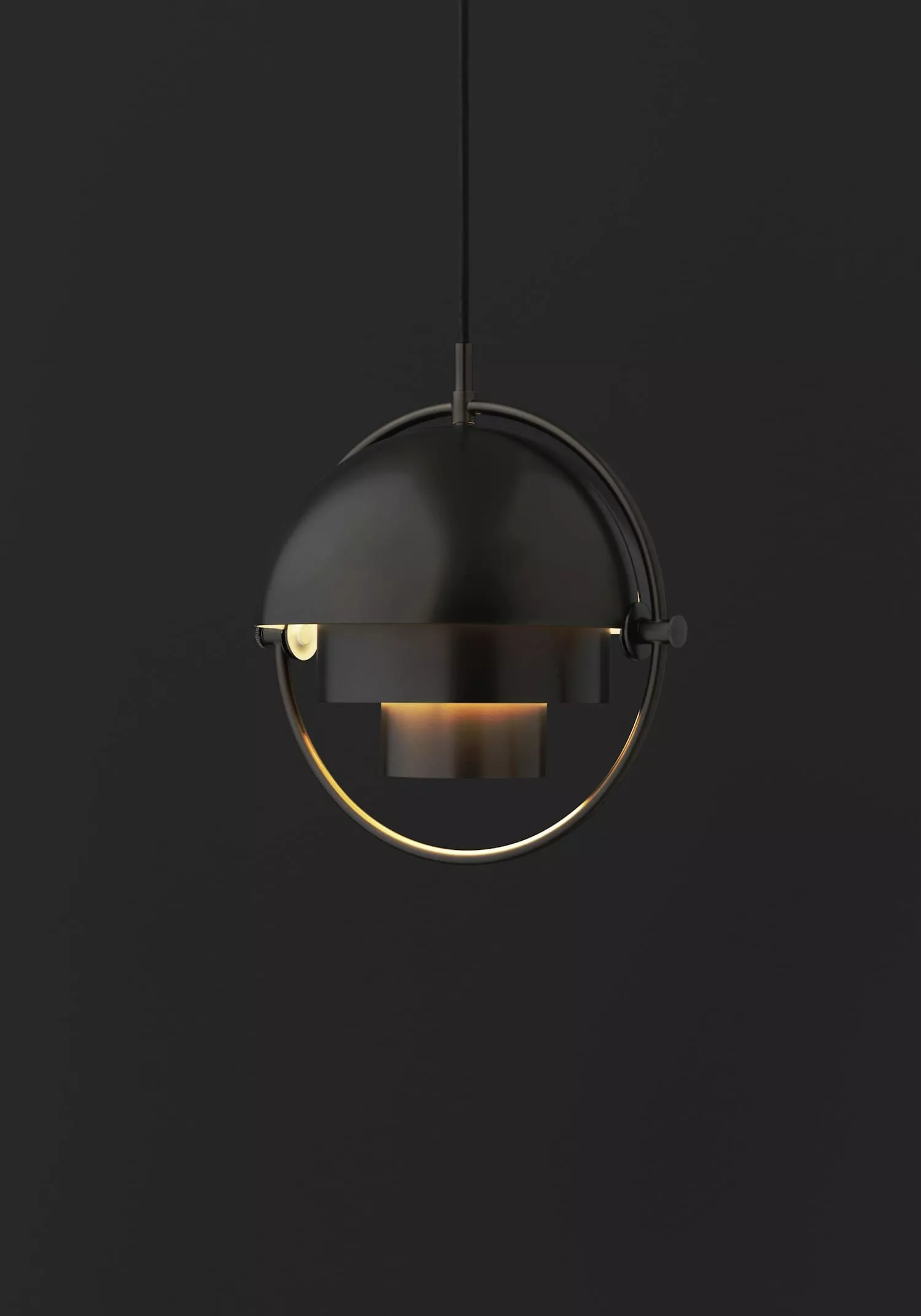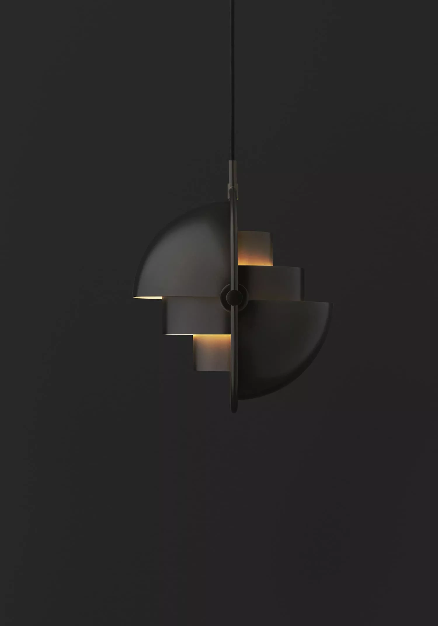 Die Multi-Lite Pendelleuchte zollt der goldenen Ära des dänischen Designs Tribut und zeichnet sich durch ihre charakteristische Form mit zwei gegenüberliegenden, beweglichen äußeren Schirmen aus. Diese einzigartige Konfiguration ermöglicht individuelle Installationen und eine Vielzahl von Beleuchtungsmöglichkeiten in einem Raum. Durch das unabhängige Einstellen der Schirme kann die Multi-Lite Pendelleuchte in zahlreiche Anordnungen angepasst werden, wodurch die Flexibilität entsteht, das Licht nach oben, unten zu richten oder eine künstlerische, asymmetrische Beleuchtung zu erzeugen.