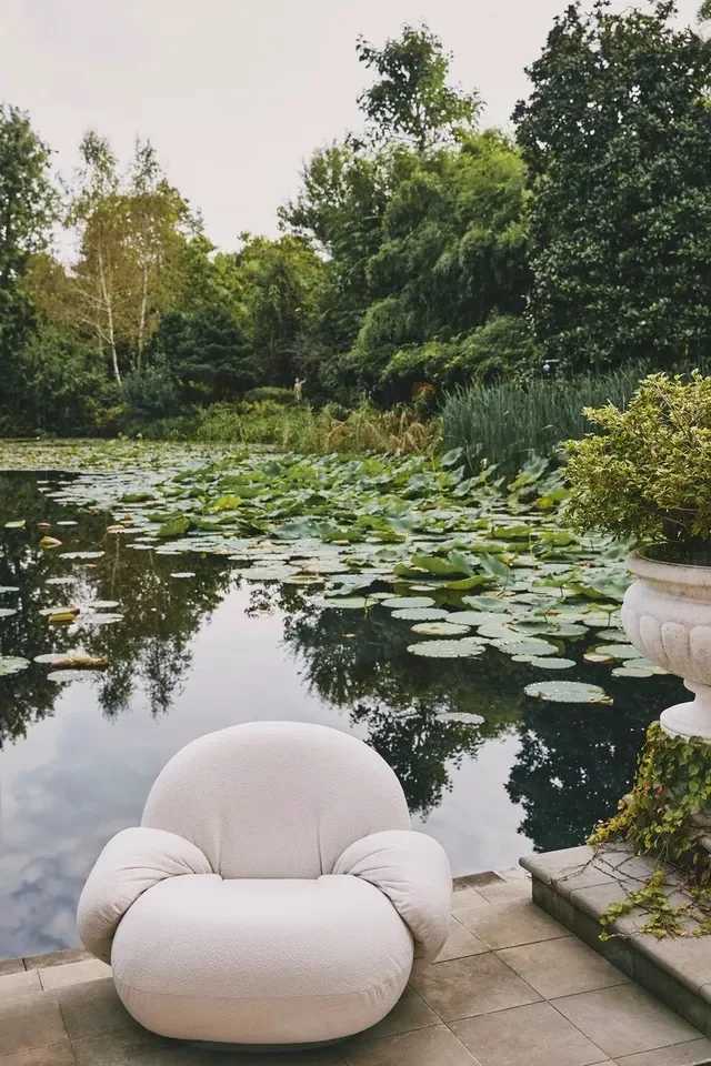 Die geschwungenen Armlehnen bieten zusätzlichen Halt und unterstreichen die luxuriöse Anmutung des Sessels, während die ergonomische Polsterung für eine weiche, umhüllende Sitzqualität sorgt. Dank spezieller wetterbeständiger Materialien und einem hochwertigen Outdoor-Stoff ist der Sessel bestens für den Einsatz im Freien geeignet – ideal für Terrassen, Gärten oder Lounge-Bereiche unter freiem Himmel.