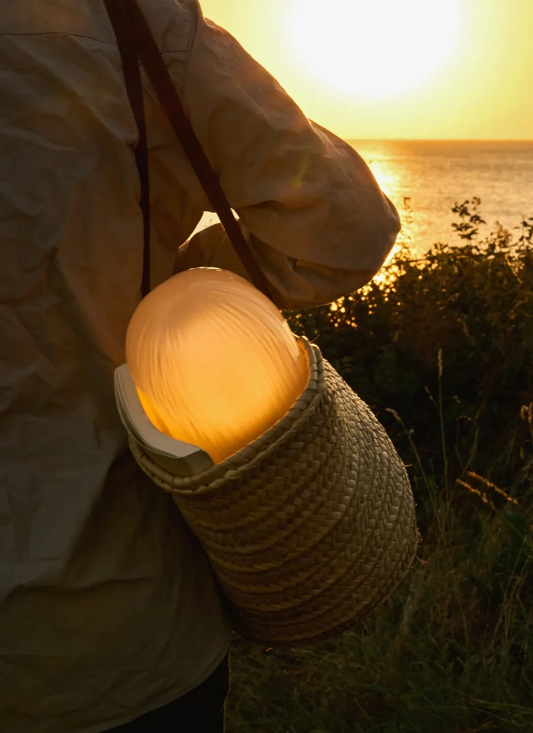 Ihr mundgeblasener, sandgestrahlter Glasschirm sorgt für eine weiche, atmosphärische Beleuchtung und verleiht jedem Raum eine warme, beruhigende Ausstrahlung. Der handgefertigte Antik-Messing-Sockel wurde ergonomisch optimiert, sodass die Lampe mühelos getragen und flexibel platziert werden kann – ob drinnen oder unter freiem Himmel.
