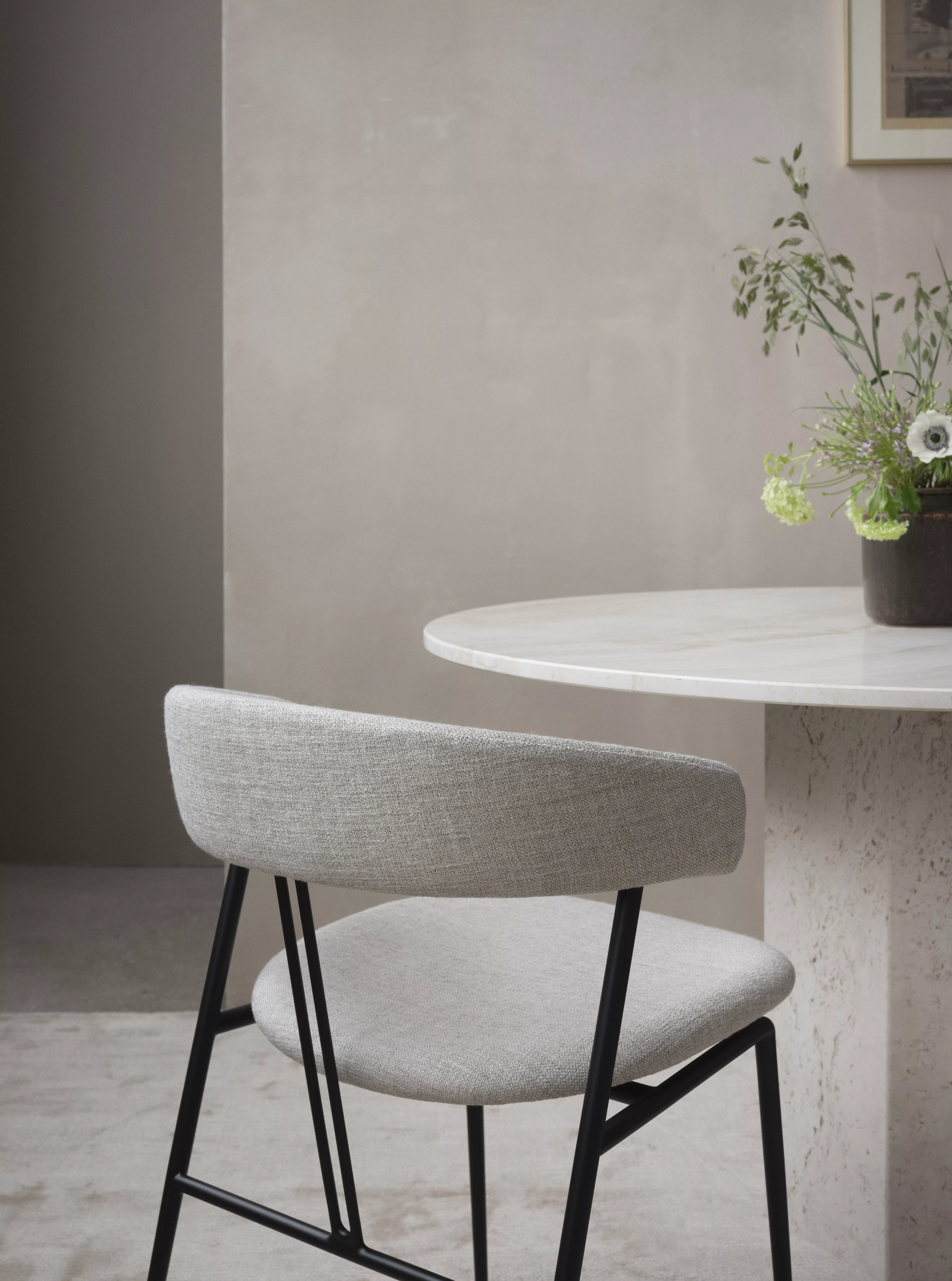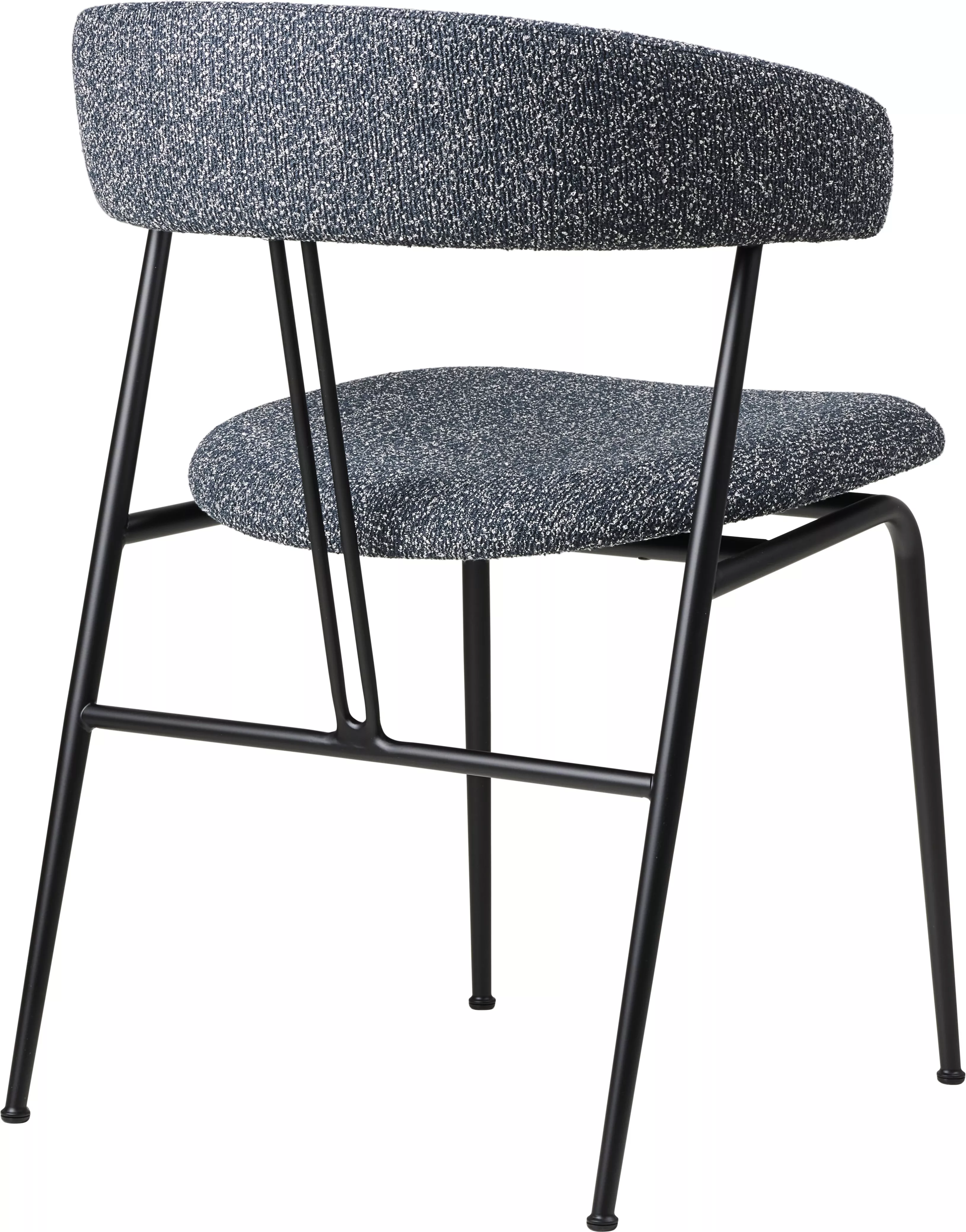 Leicht, frisch und elegant, strahlt der charaktervolle und komfortable Violin Chair des dänisch-italienischen Duos GamFratesi mit kühner Kreativität und purer Handwerkskunst. Wie sein musikalisches Namensvorbild ist das Design des Violin Chair ein harmonisches Duett von Form und Funktion. Zwei parallel verlaufende Linien, die sich von der Rückenlehne erstrecken, erinnern an die Saiten einer Violine und bieten gleichzeitig wesentliche Unterstützung. Elegante Verzierungen, wie die sanften Kurven, an denen die Linien auf die horizontale Stange treffen, verleihen dem Stuhl einen raffinierten, aber unverkennbaren Charakter, bei dem das Klassische auf das Moderne trifft. Die leicht zulaufenden, pulverbeschichteten Stahlbeine tragen eine großzügige Sitzfläche und eine einladende halbe Armlehne, die so gestaltet ist, dass der Stuhl sowohl als Esszimmerstuhl als auch als Sessel verwendet werden kann, ohne den Komfort in beiden Einstellungen zu beeinträchtigen.