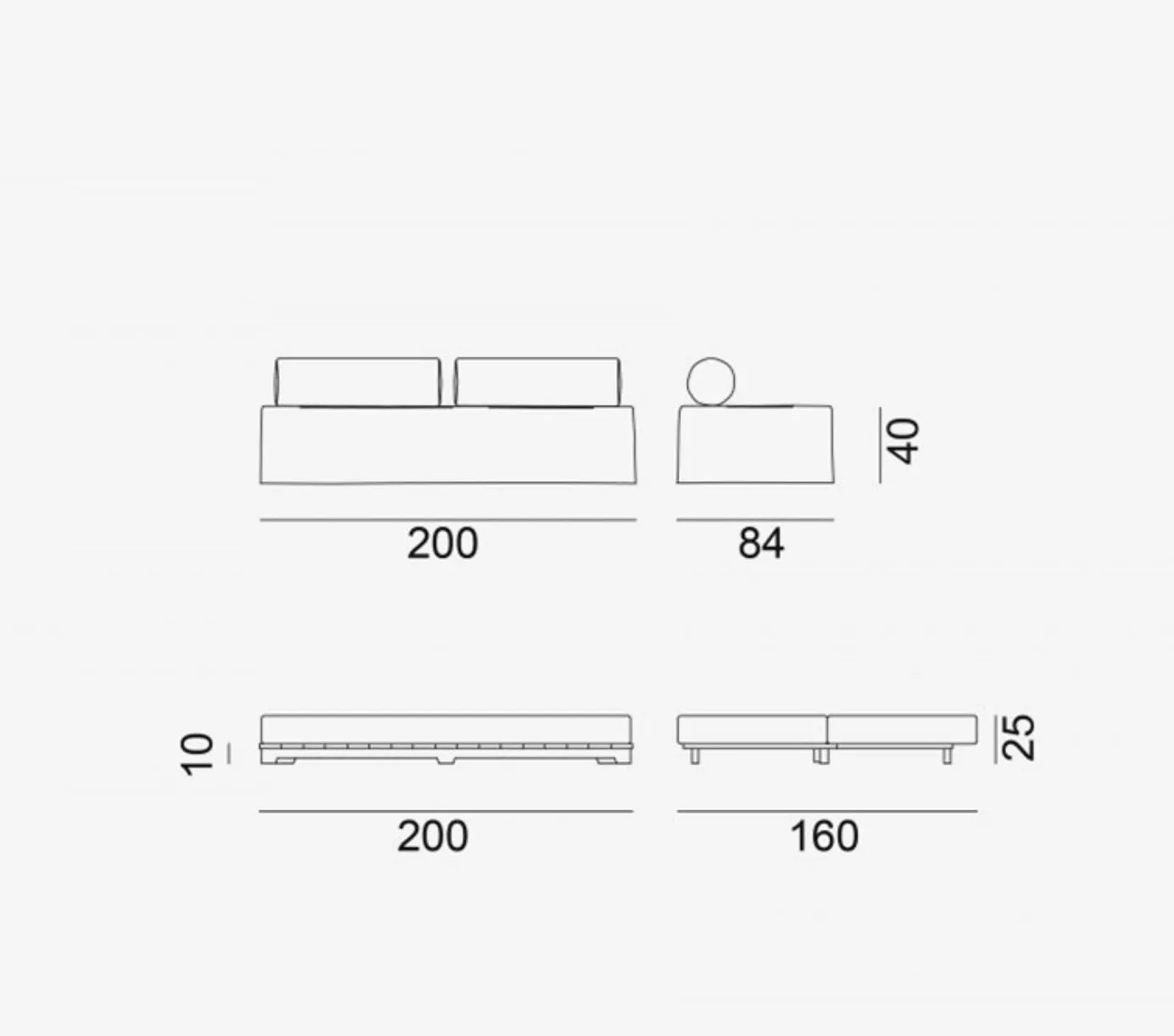 Ausgeklappt: 200 x 160 x 25 cm