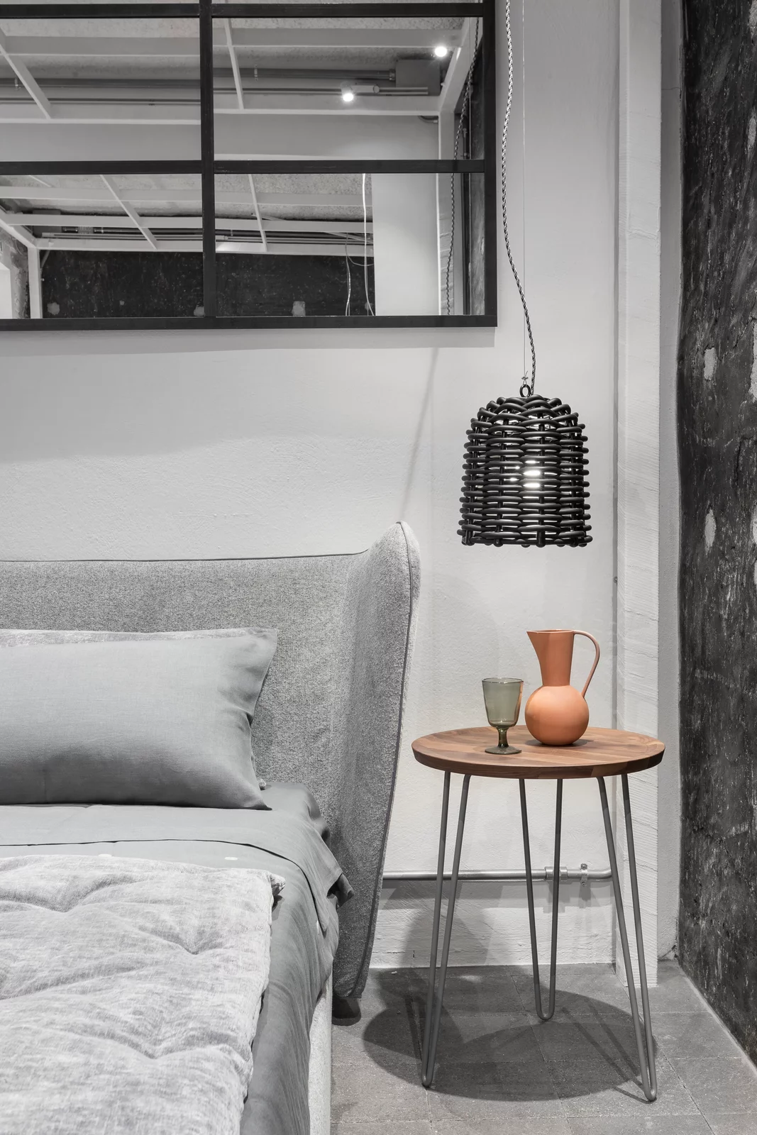 Der Beds Nachttisch 46 besticht durch seine bemerkenswerte visuelle Leichtigkeit, die durch die wellenförmigen, runden Stahlfüße in mattem Weiß oder Grau verkörpert wird. Die Tischplatte ist in verschiedenen Farben erhältlich, darunter Nussbaum Canaletto in den Ausführungen Natur, Schwarz, Weiß, Grau, Ozeanblau, Taubengrau, Blueberry, Date oder Ginger. Dieser Nachttisch vereint auf elegante Weise modernes Design mit hochwertigen Materialien und fügt sich nahtlos in vielfältige Einrichtungsstile ein. .