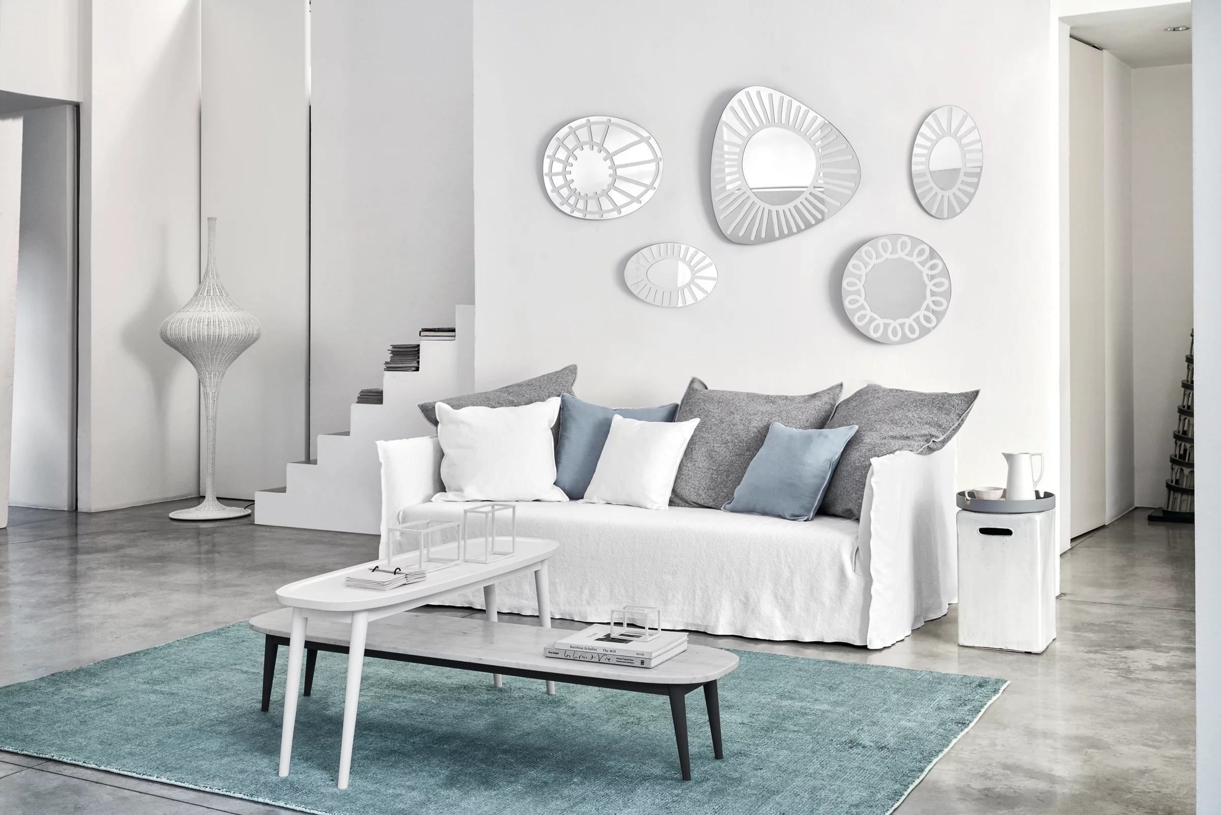 Gervasoni Beds NachttischDer Beds Nachttisch 46 besticht durch seine bemerkenswerte visuelle Leichtigkeit, die durch die wellenförmigen, runden Stahlfüße in mattem Weiß oder Grau verkörpert wird. Die Tischplatte ist in verschiedenen Farben erhältlich, darunter Nussbaum Canaletto in den Ausführungen Natur, Schwarz, Weiß, Grau, Ozeanblau, Taubengrau, Blueberry, Date oder Ginger. Dieser Nachttisch vereint auf elegante Weise modernes Design mit hochwertigen Materialien und fügt sich nahtlos in vielfältige Einrichtungsstile ein. . Maße: HxLxB: 65 x Ø50cm