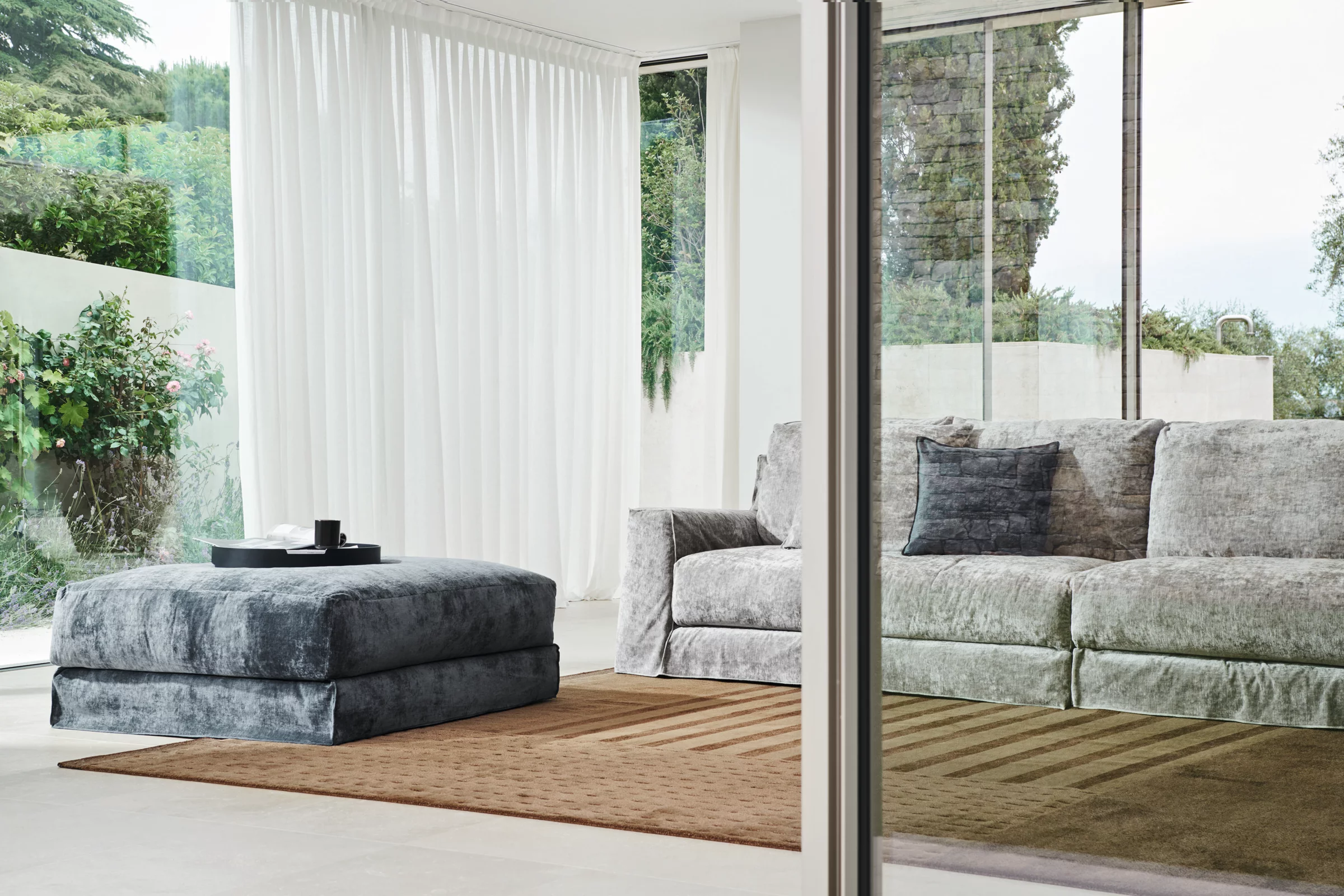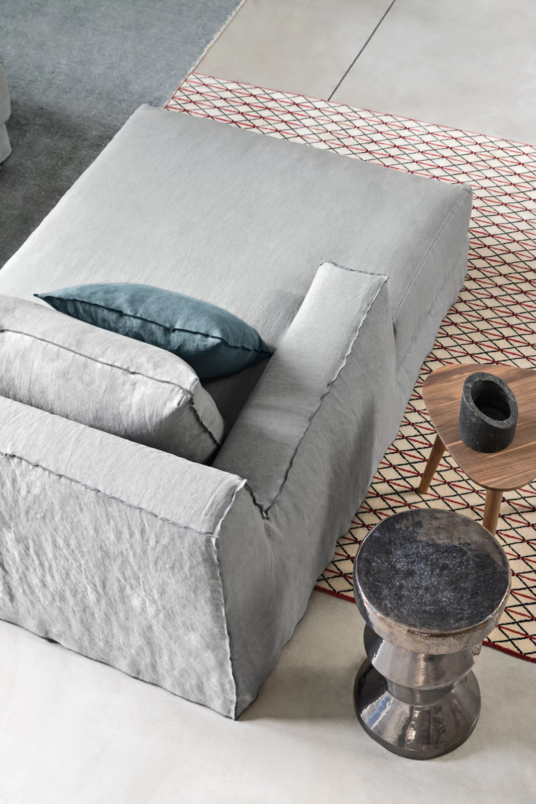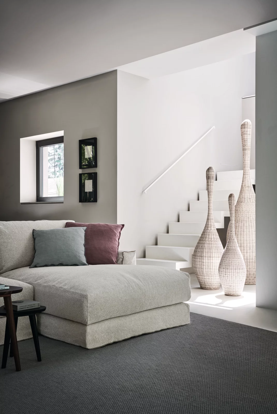 Die LOLL-Sofas beeindrucken durch ihre Vielseitigkeit, da unterschiedlich geformte Module und besondere Eckelemente immer neue Konfigurationen ermöglichen. Diese Sofas verkörpern die Vorstellung von zeitgemäßem Komfort, der durch Liebe zum Detail, hochwertige Materialien und unvergleichliche handwerkliche Verarbeitung eine ganz besondere Note erhält. Die Silhouette der Sofas wird durch die charakteristische Overlocknaht betont, die den essenziellen geometrischen Formen und weichen Linien der Kollektion folgt, als wäre sie ein leichter, freihändig gezeichneter Strich. Das Gestell aus Massivholz kombiniert sich mit einer komfortablen Sitzfläche aus Polyurethanschaum, während große Sitz- und Rückenkissen eine weiche Schicht aus kanalisierten Gänsedaunen bieten. Traditionelle Techniken werden angewendet, indem die Sitzkissen mit einem Federkern ausgestattet werden, um maximalen Komfort zu gewährleisten. Alle Modelle der LOLL-Kollektion zeichnen sich durch ihre vollständige und leichte Abziehbarkeit aus, was die Pflege und Anpassung an individuelle Vorlieben erleichtert. Das Ergebnis ist eine gelungene Kombination aus zeitgemäßem Design, höchstem Komfort und handwerklicher Qualität.