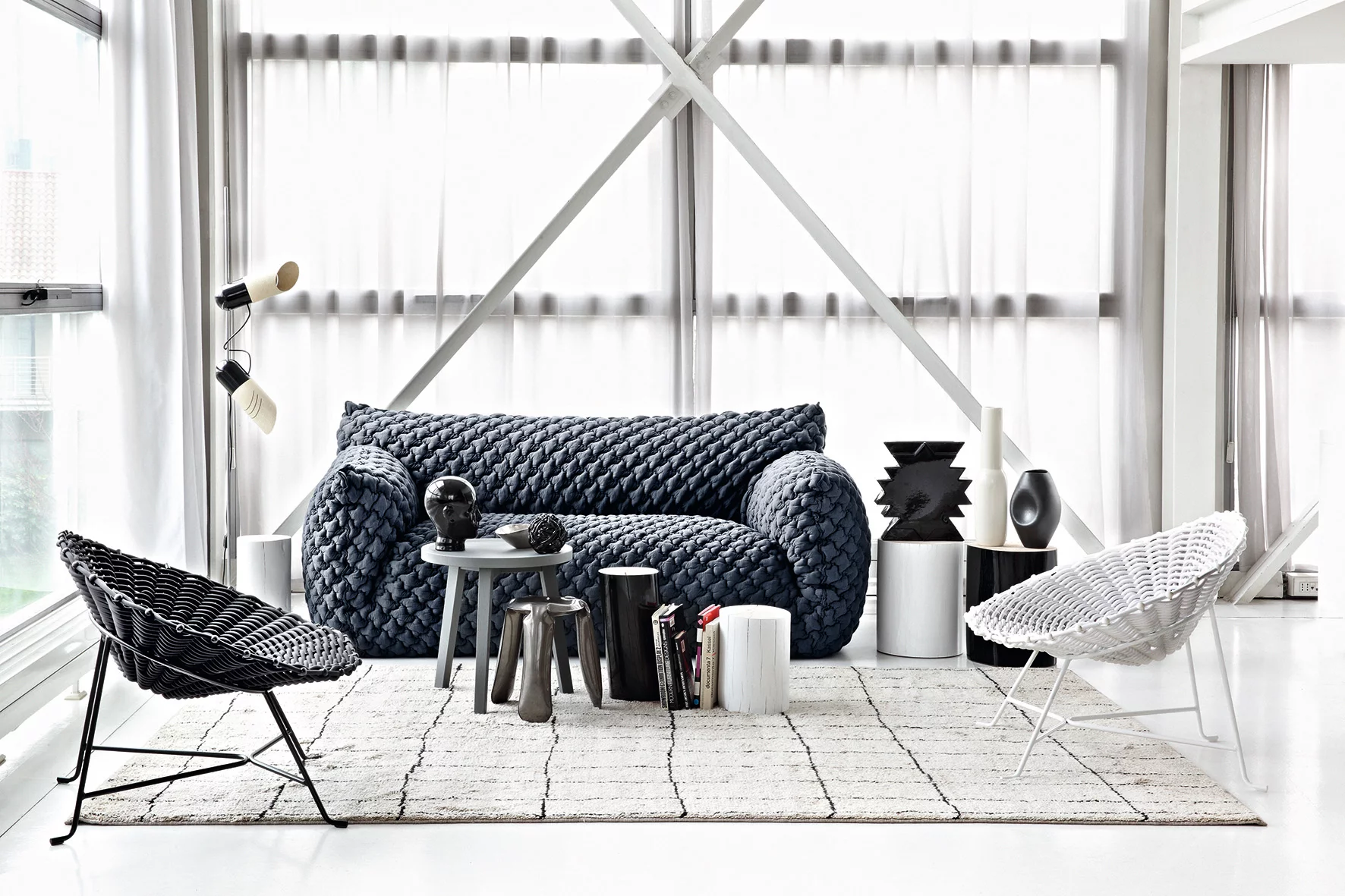 Der beliebte Ort für Momente der Entspannung: Nuvola ist eine Polstermöbelkollektion bestehend aus Sesseln und Sofas, die sich durch ihre weichen und attraktiven Formen auszeichnet. Seine „chubby“-Linie, die ihn zu einer wahren Ikone gemacht hat und sich durch hohe Armlehnen und eine tiefe Sitzfläche auszeichnet, heißt Sie wie eine Umarmung willkommen und erzeugt einen echten Kokon-Effekt. Eine übergroße Polsterung mit informeller Ausstrahlung, die vollständig abnehmbar ist und je nach gewählter Polsterung ihr Aussehen ändert: Während die wichtigen und verarbeiteten Stoffe seine volle Form betonen, lehnen sich die leichten Baumwoll- und Leinenstoffe an die Struktur an, als würden sie von der Luft getragen.