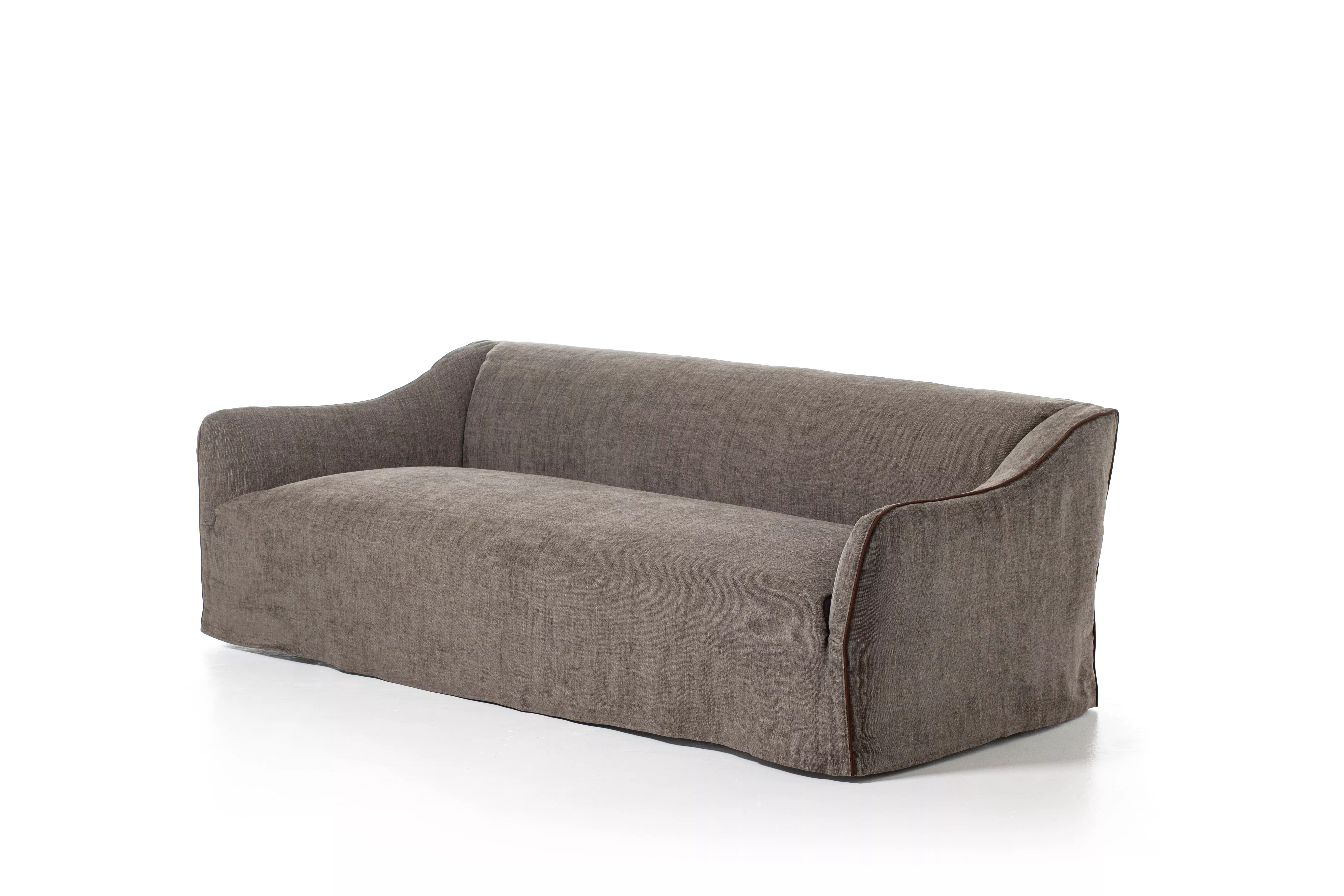 Sofa, Polsterung aus Polyurethan differenzierter Dichte, Sitz mit Taschenfederkern, um Komfort, Weichheit und Langlebigkeit zu verbessern. Rollkissen mit Daunenfüllung. Abziehbare Hussen mit Keder.