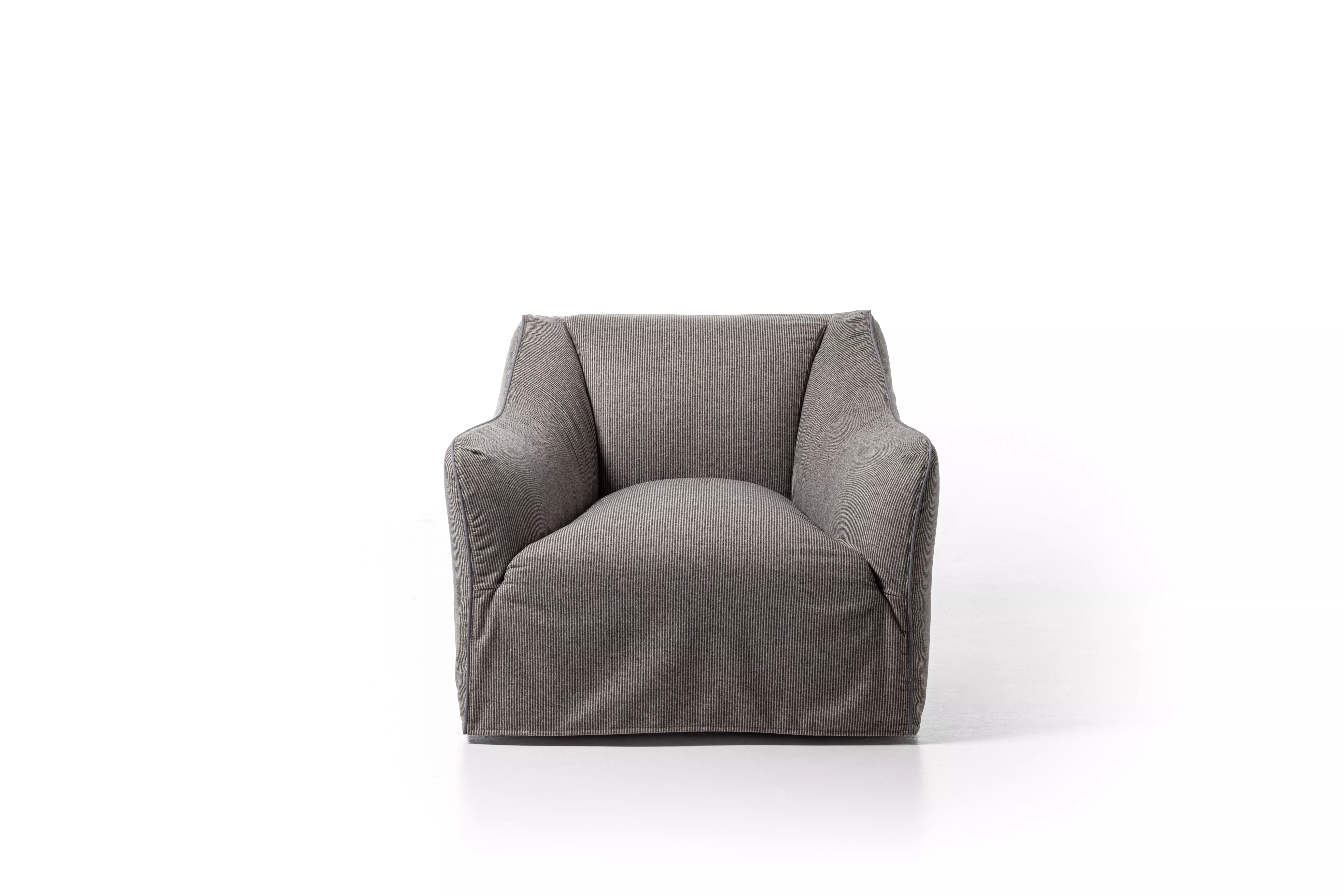 Sessel, Polsterung aus Polyurethan differenzierter Dichte, Sitz mit Taschenfederkern, um Komfort, Weichheit und Langlebigkeit zu verbessern. Rollkissen mit Daunenfüllung. Abziehbare Hussen mit Keder.