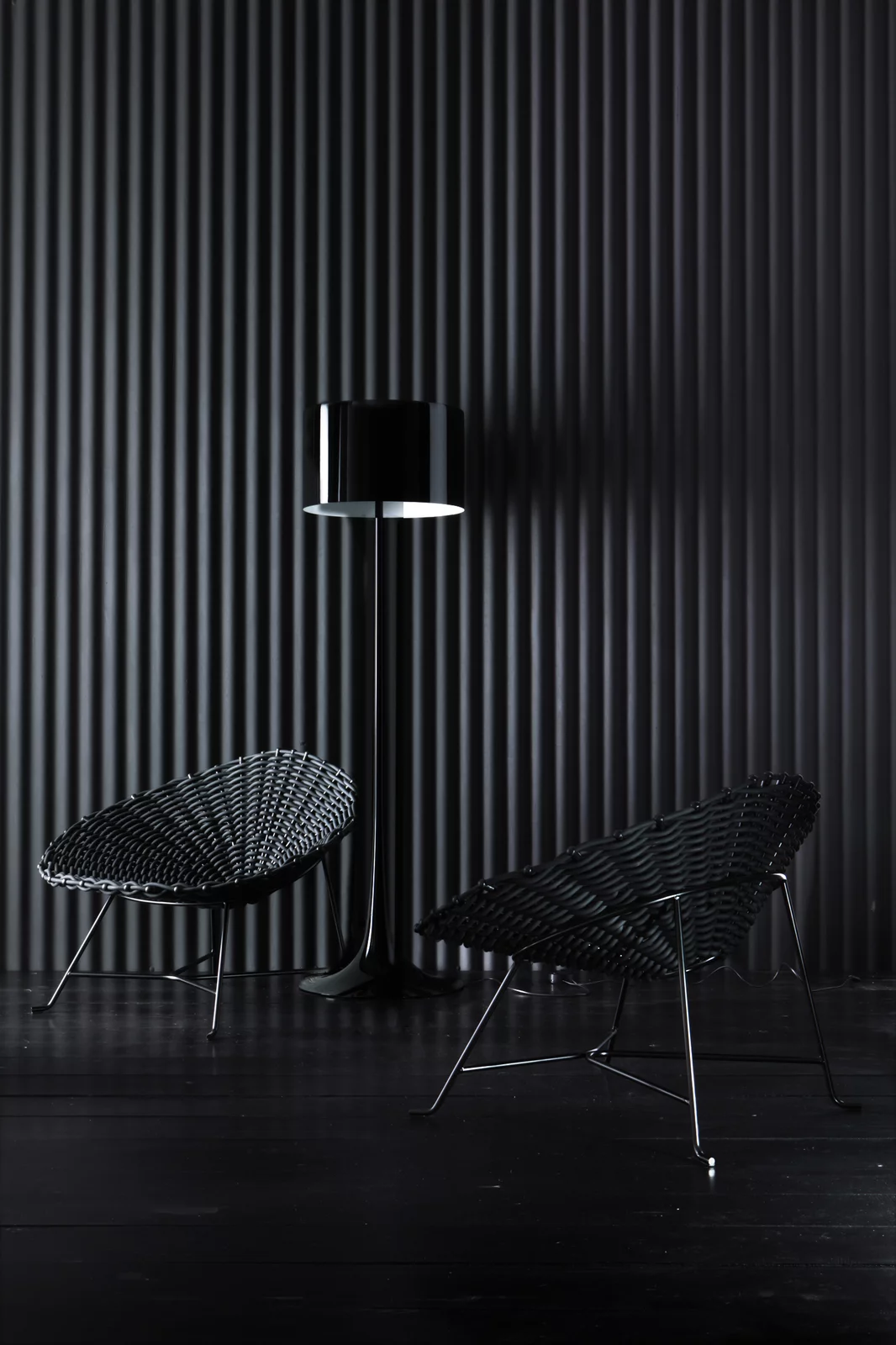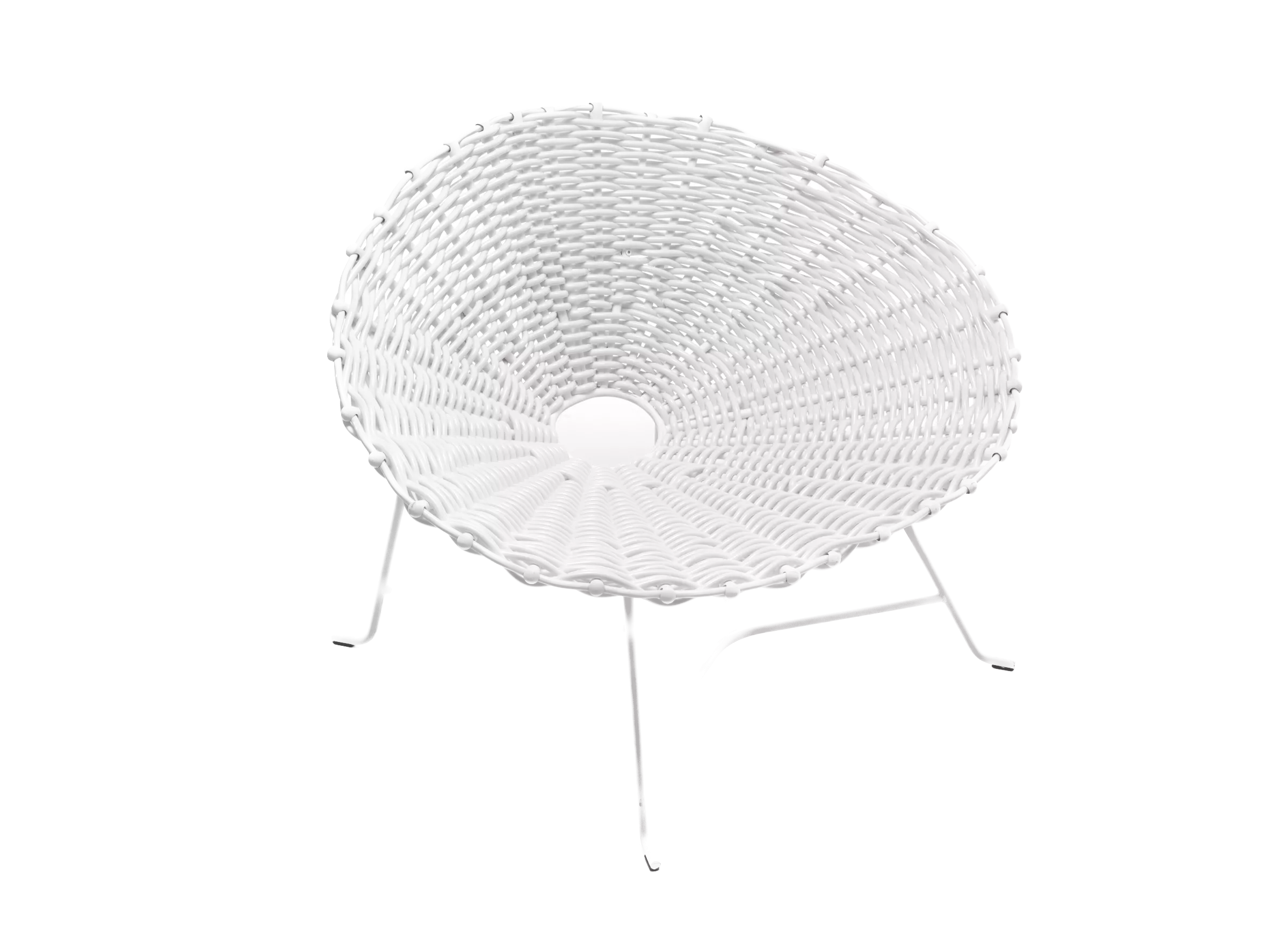 Der geschwungene Sessel Sweet 27 zeichnet sich durch seine einzigartige Flechtung aus. Das pulverlackierte Metallgestell in mattem Schwarz harmoniert perfekt mit dem schwarzen PVC-Geflecht, das dem Sessel eine charakteristische Textur verleiht. Alternativ ist der Sessel auch mit einem weißen Gestell und weißem glänzendem PVC erhältlich.